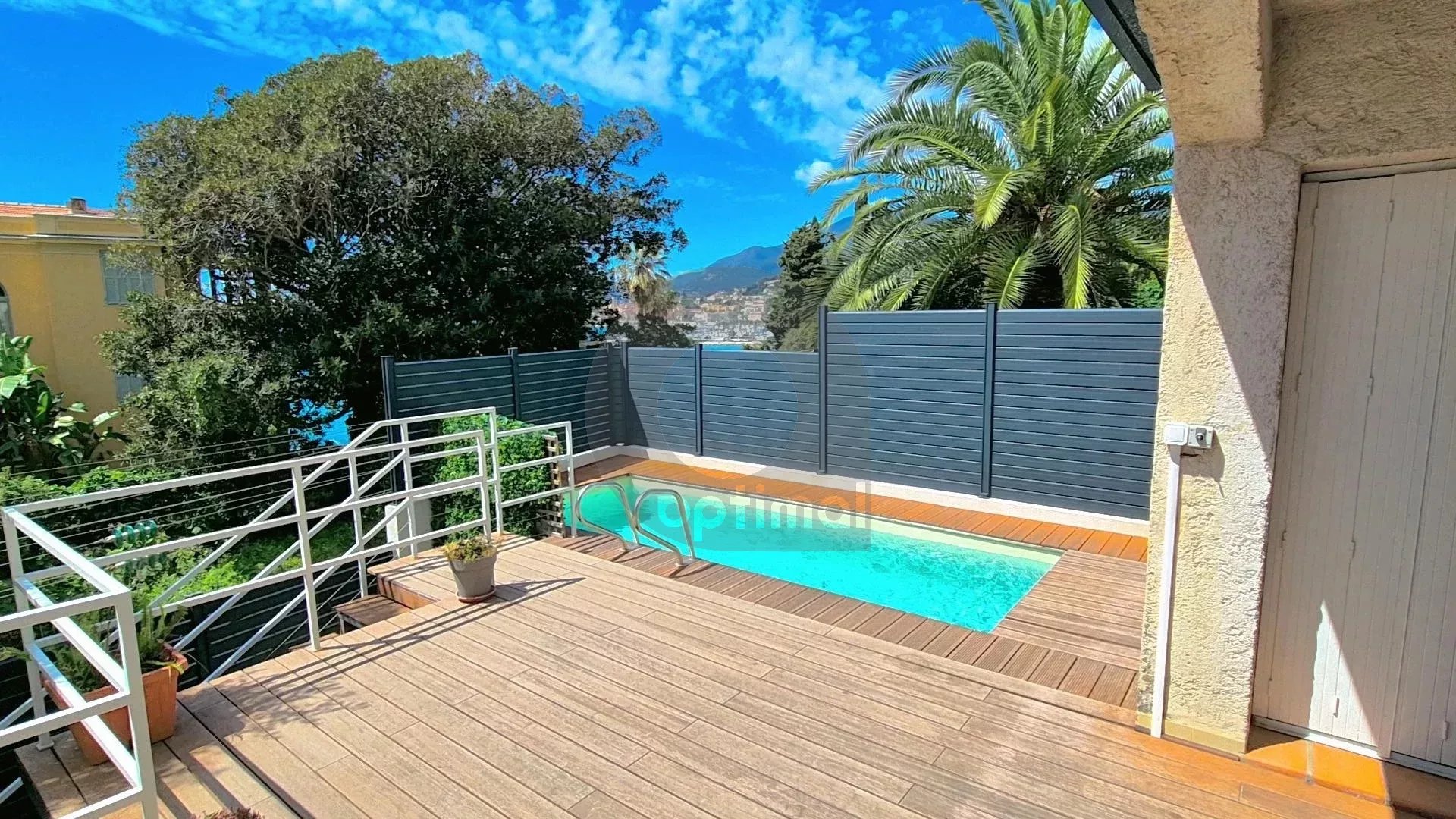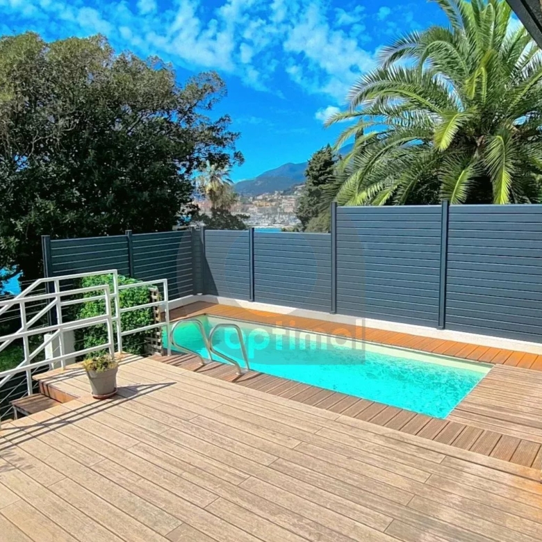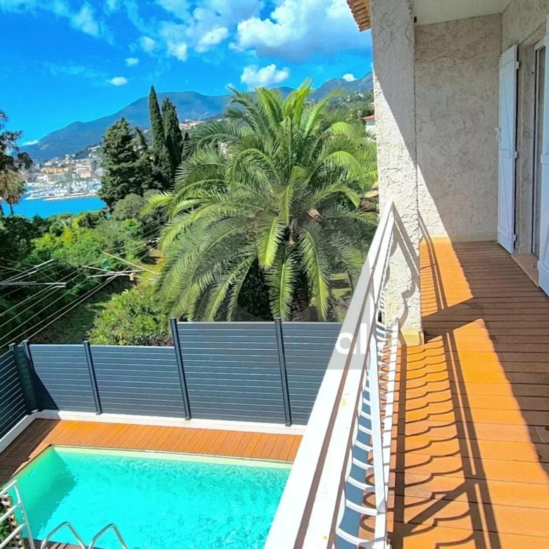 La terrasse attenante au séjour constitue un véritable atout, avec sa piscine privative, idéale pour se rafraîchir tout en admirant la vue sur Menton.