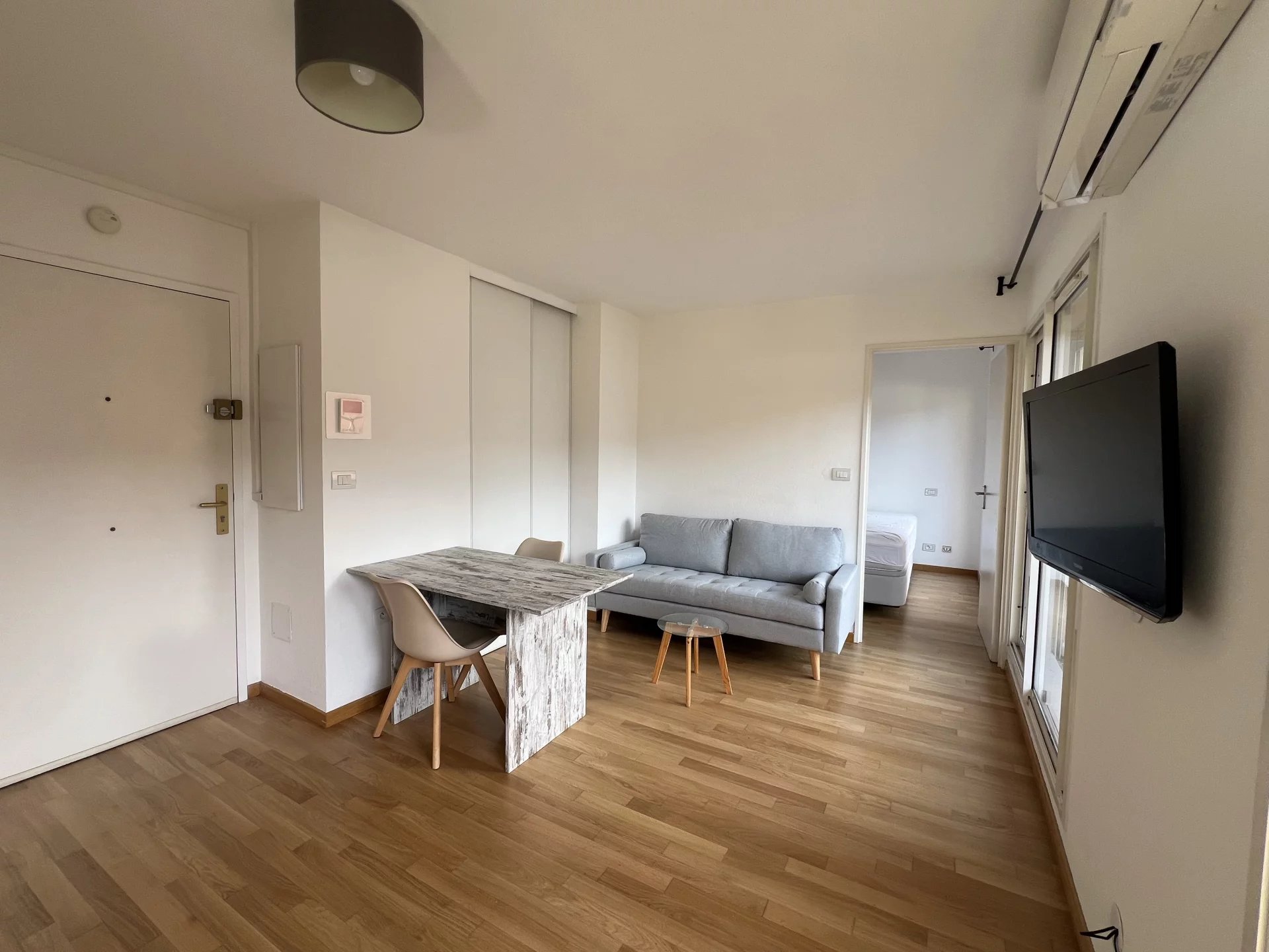 Dans résidence face mer, beau 2 pièces + cabine avec fenêtre, pouvant servir de chambre d’appoint ou bureau.
