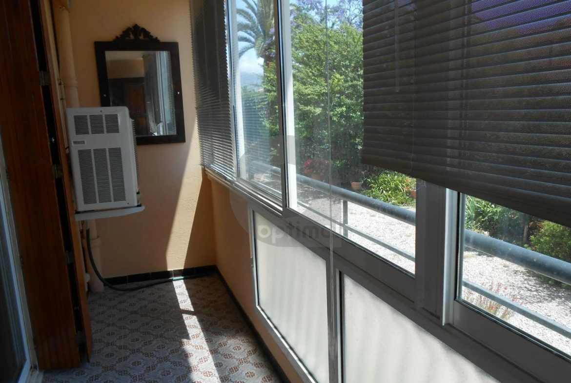 rez de chaussée surélevé, se composant d’une entrée, séjour ouvrant sur véranda, jolie vue sur jardin, cuisine aménagée, 2 chambres avec rangements, salle de bain et wc indépendant.