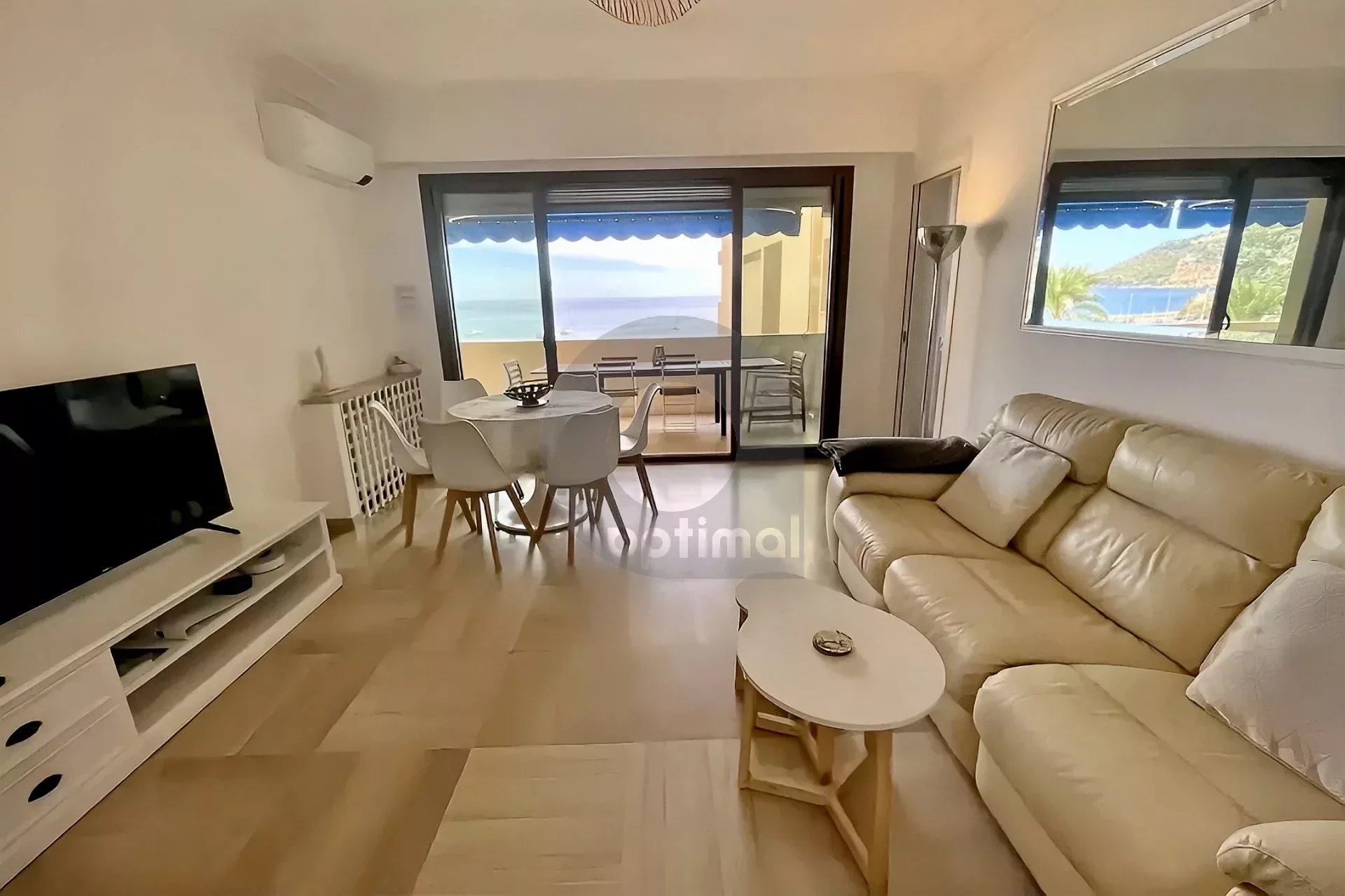 entrée, séjour avec cuisine équipée, terrasse de 20m² avec VUE MER,