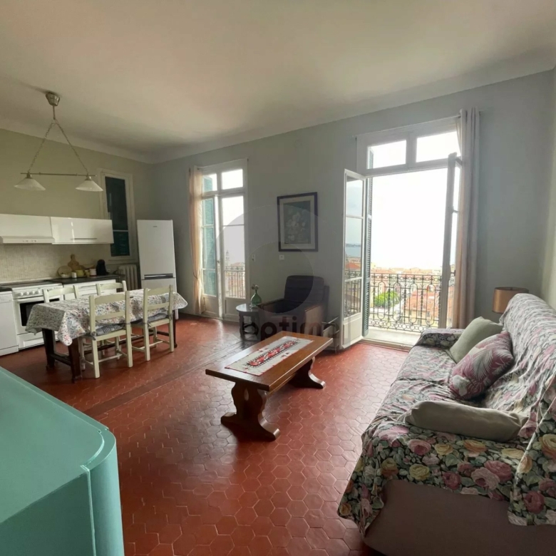 L’Agence Martini vous propose à la location meublée à l’année cet appartement de trois pièces d’une superficie de 76,73 m², au 1er étage d’une maison située dans le quartier des Ciappes, proche du centre-ville de Menton.