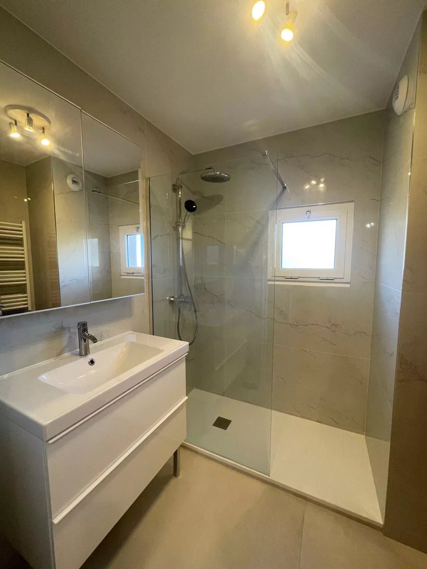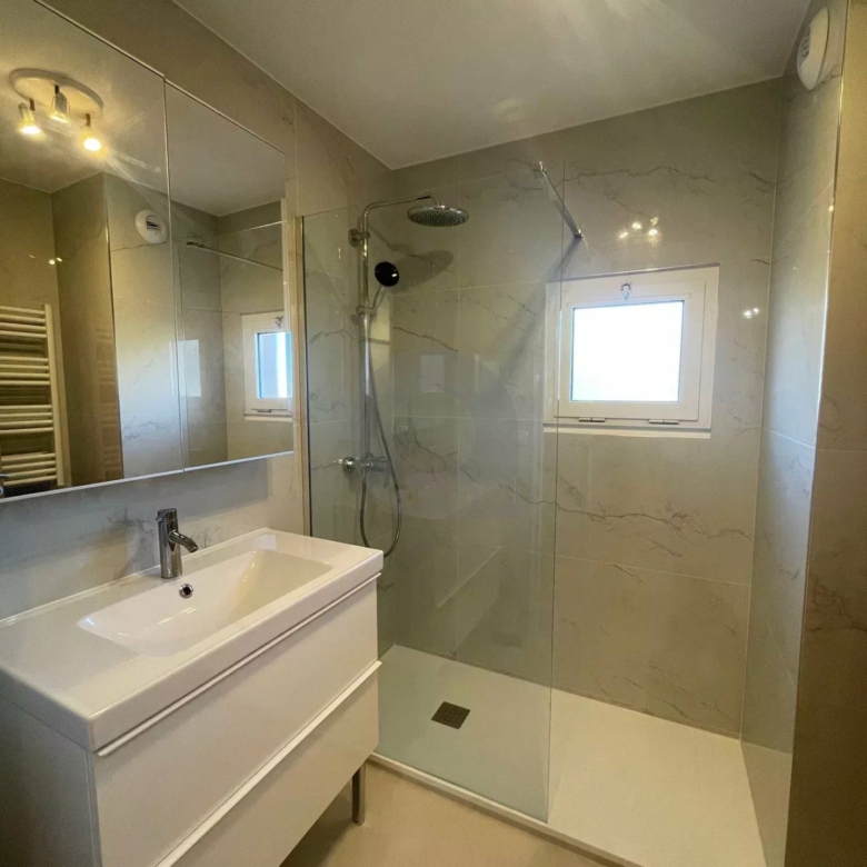 D’une superficie de 75,08 m², il se compose d’une entrée, séjour et cuisine ouvrant sur une belle terrasse ensoleillée, dégagement avec grand placard mural, trois chambres, salle d’eau entièrement rénovée avec douche à l’italienne, wc indépendant, ainsi qu’une buanderie. Un garage privatif vient compléter le tout.