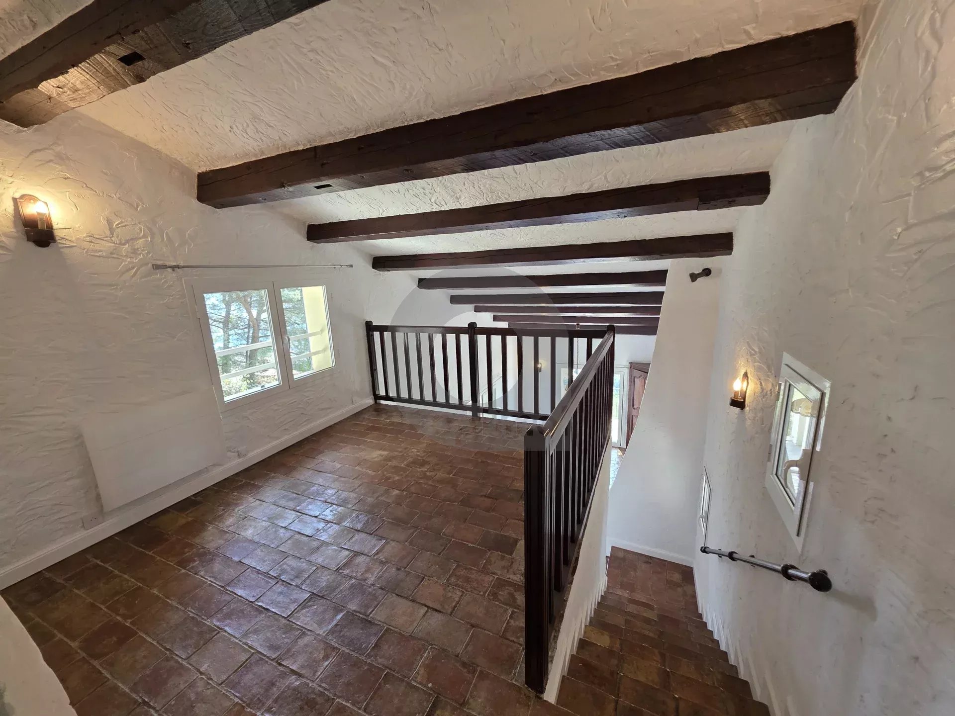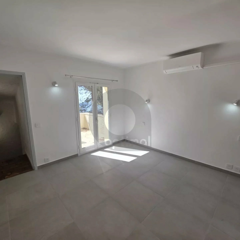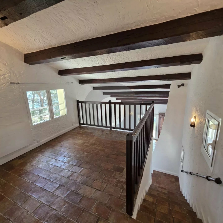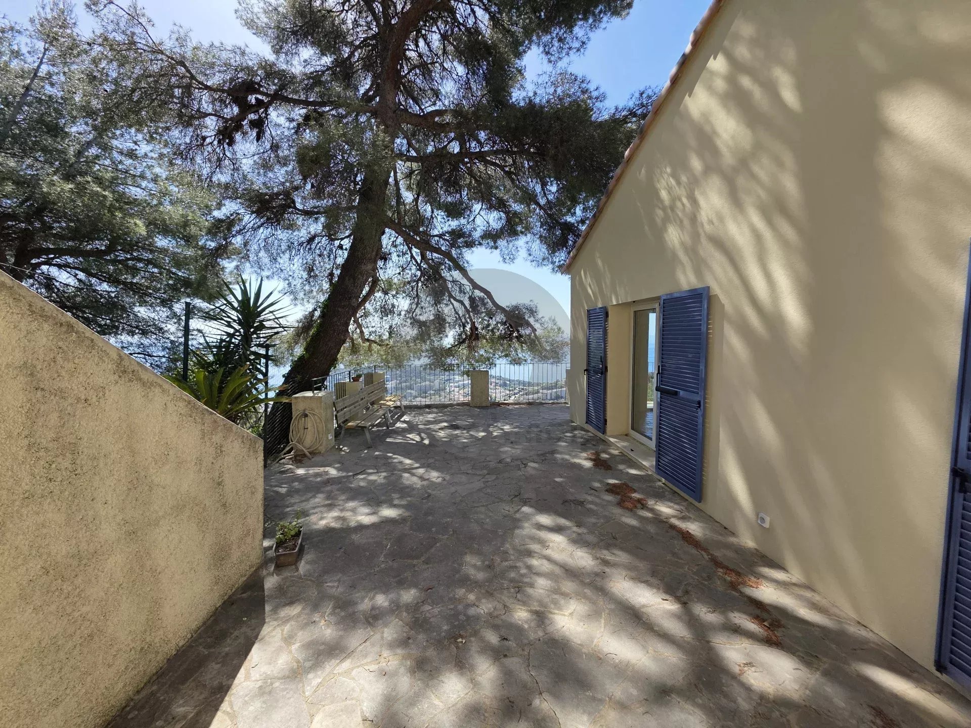 A l’extérieur, plusieurs terrasses en restanques permettent de profiter pleinement de l’environnement calme et de la vue. Accès à la maison par escaliers.