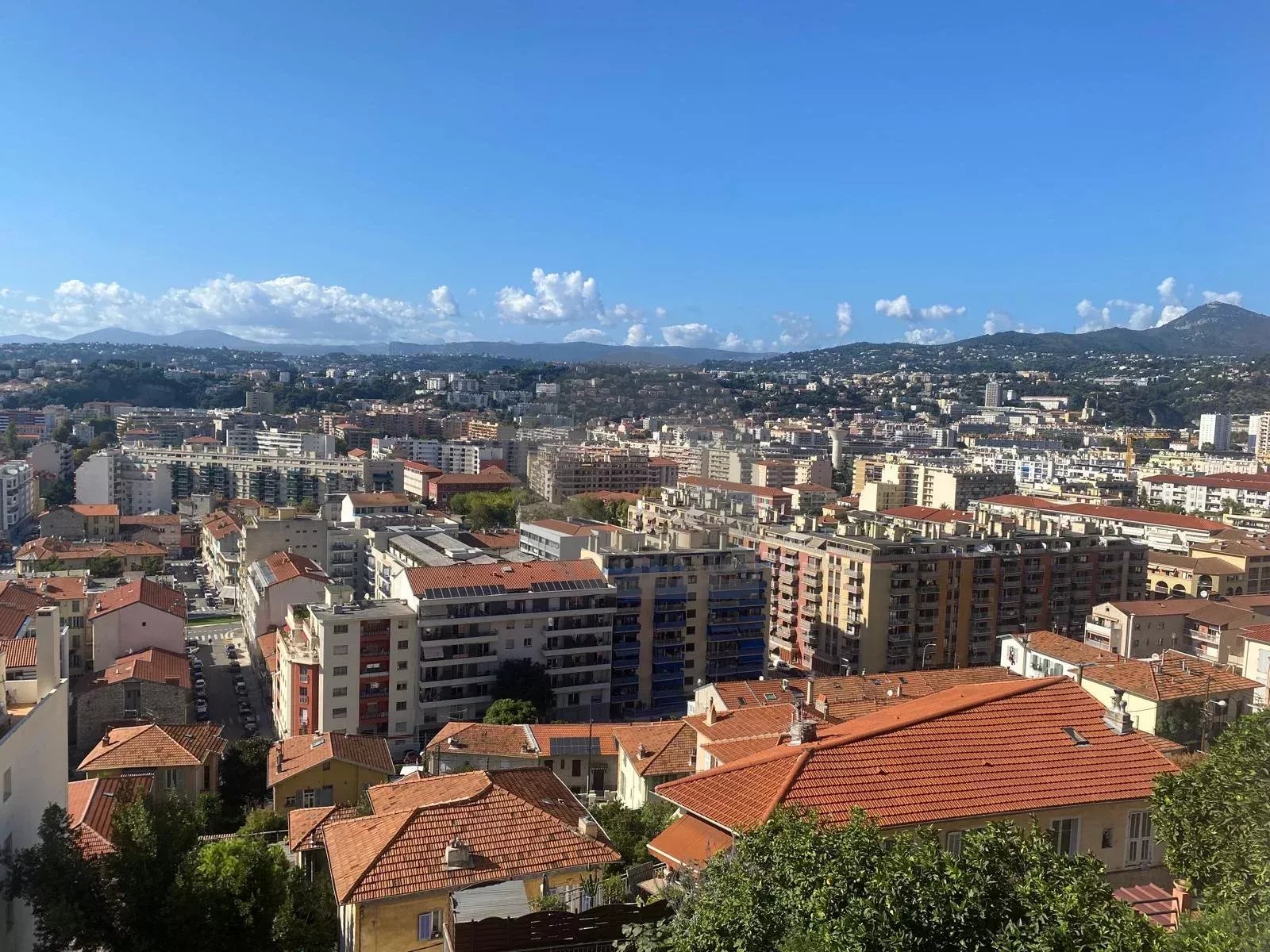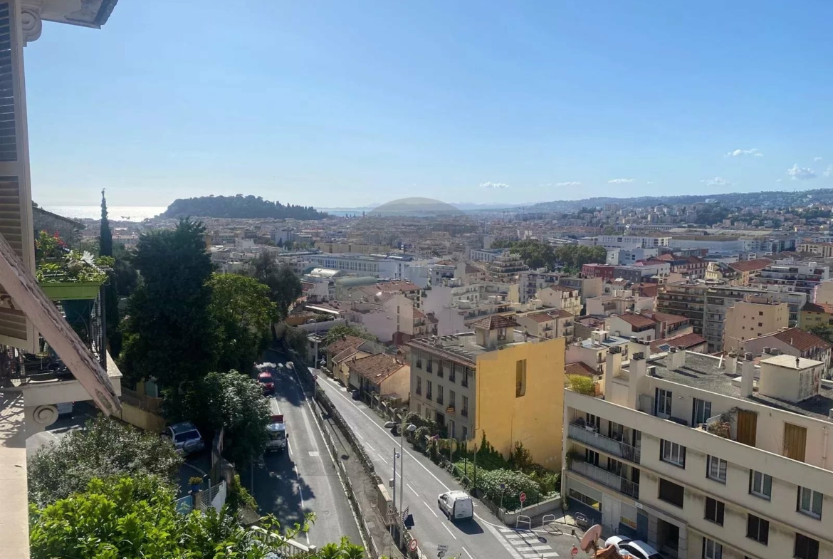 Cadre exceptionnel : Vue panoramique sur Nice, ses montagnes et la mer, dans un quartier résidentiel prisé.