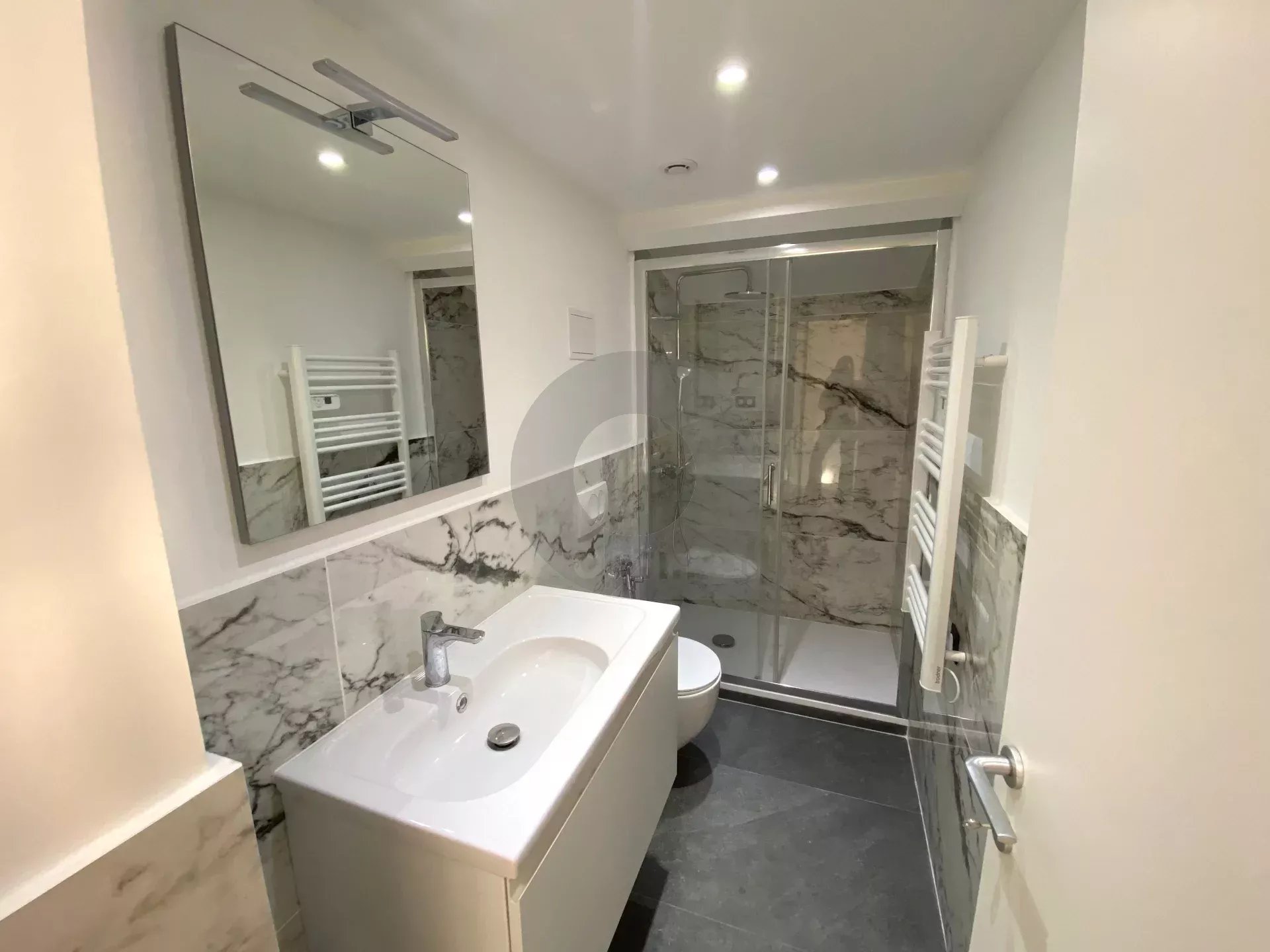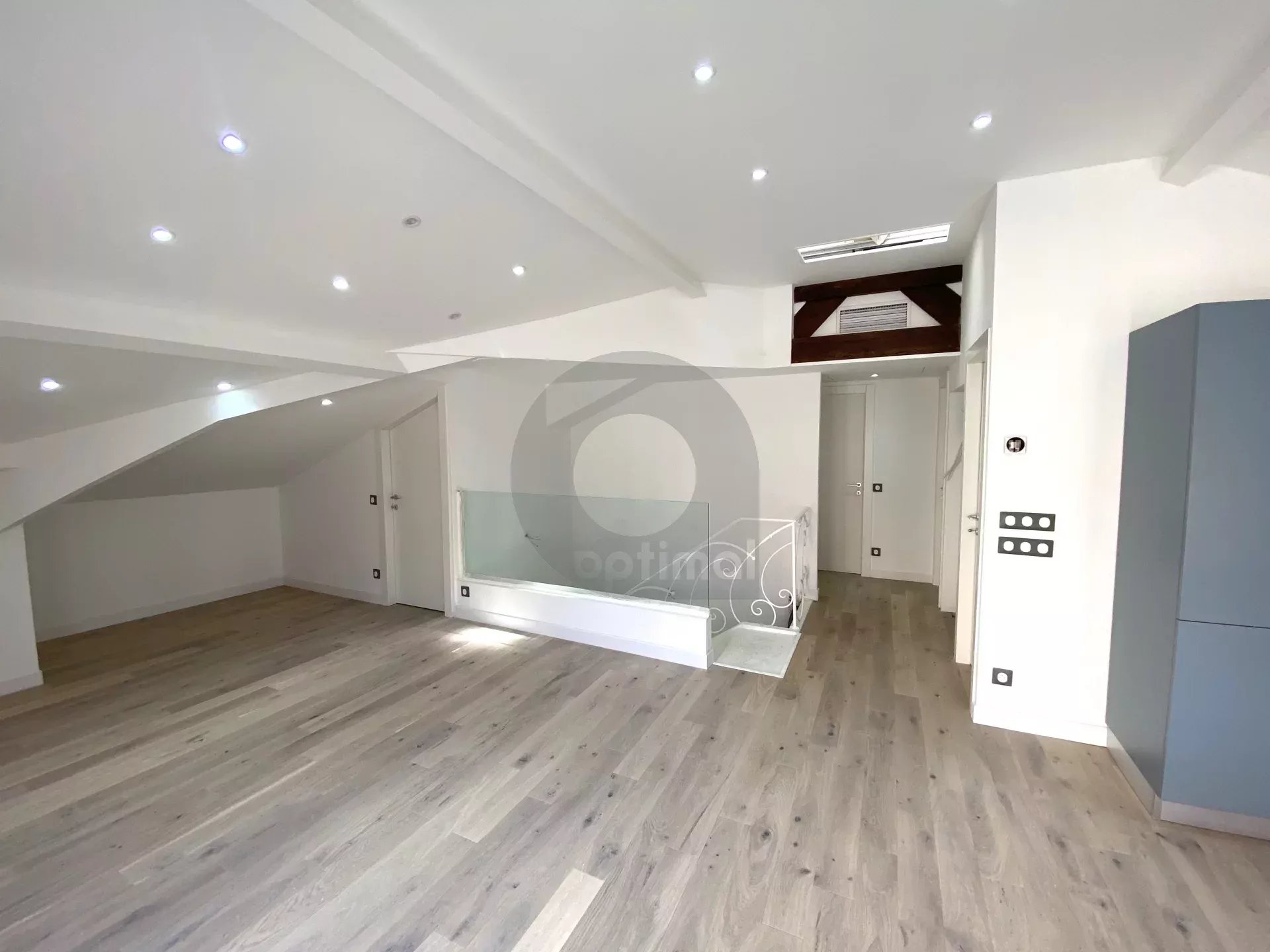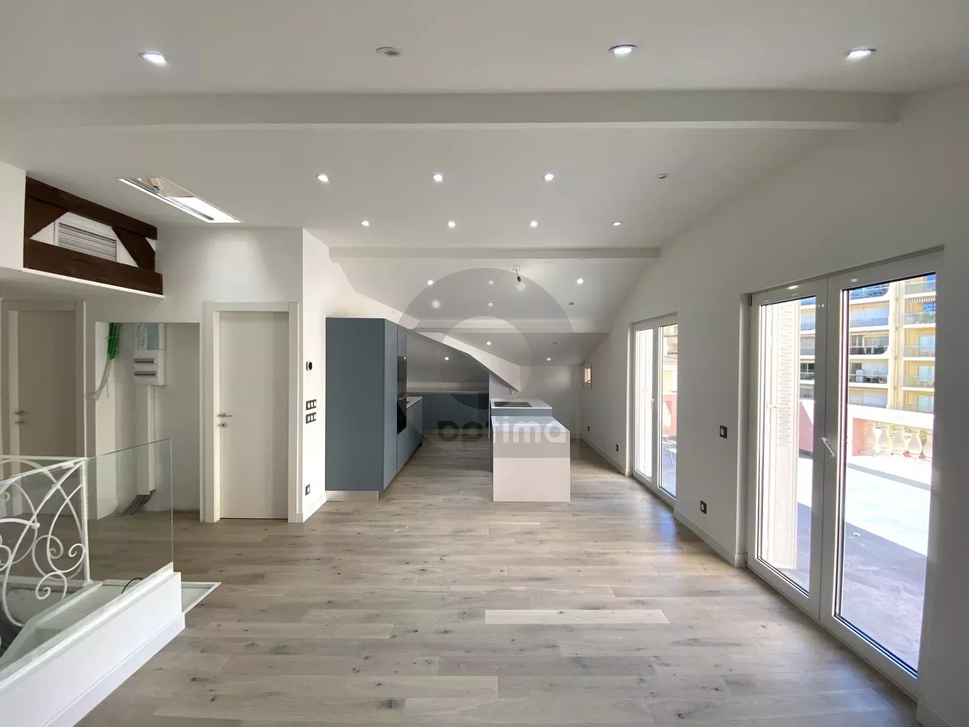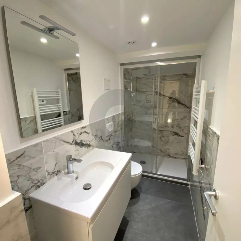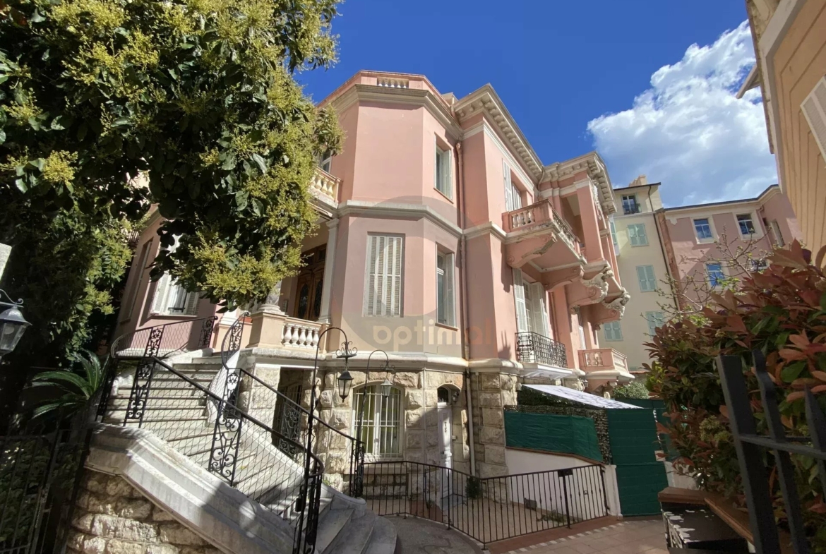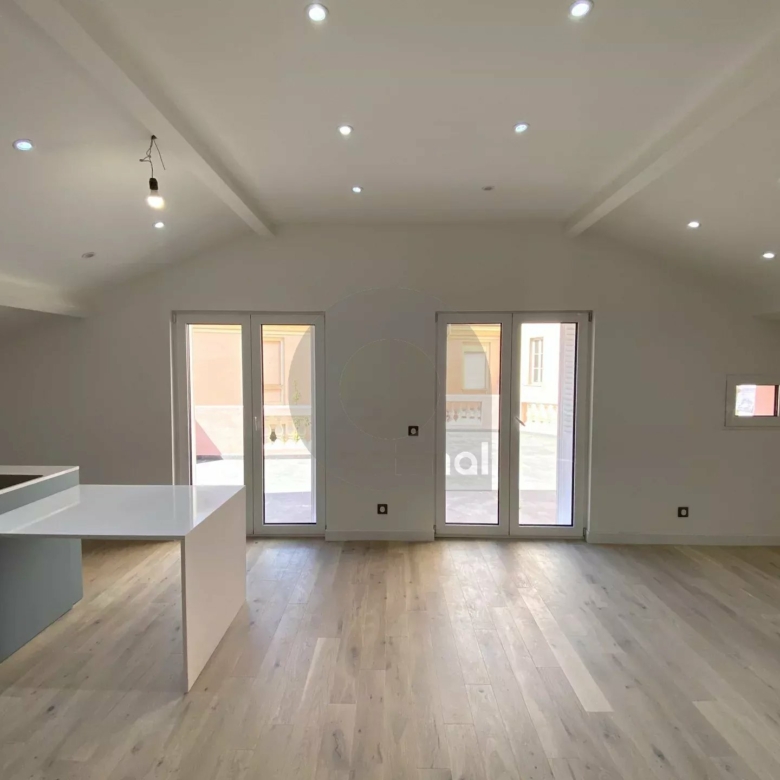 Nel comune di Mentone, all’ultimo piano di una bellissima dimora degli anni 1920, grande trilocale di 62mq ristrutturato con materiali di qualità. L’appartamento è composto da un ingresso con scala che conduce al soggiorno di 43mq, cucina americana con molti pannelli di stoccaggio e cantina vinicola, due camere da letto, due bagni con WC. Grande terrazza di 38mq esposta a sud-ovest. Bella luminosità. Nessun lavoro da prevedere. Ideale sia come residenza principale che secondaria.