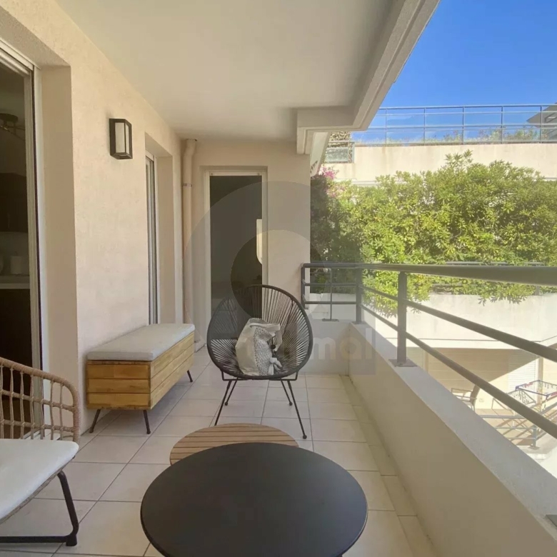 Cet appartement se compose d’un séjour avec cuisine ouverte équipée, d’une chambre, le tout donnant sur une terrasse de 10 m², d’une salle de bain et d’un toilette séparé.