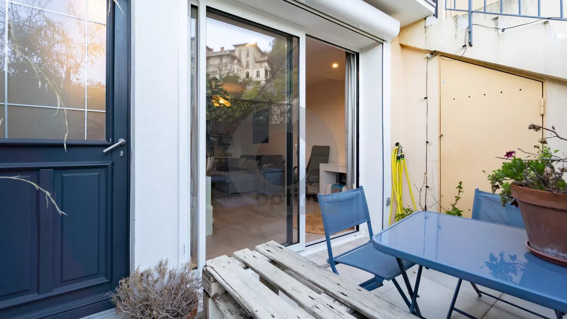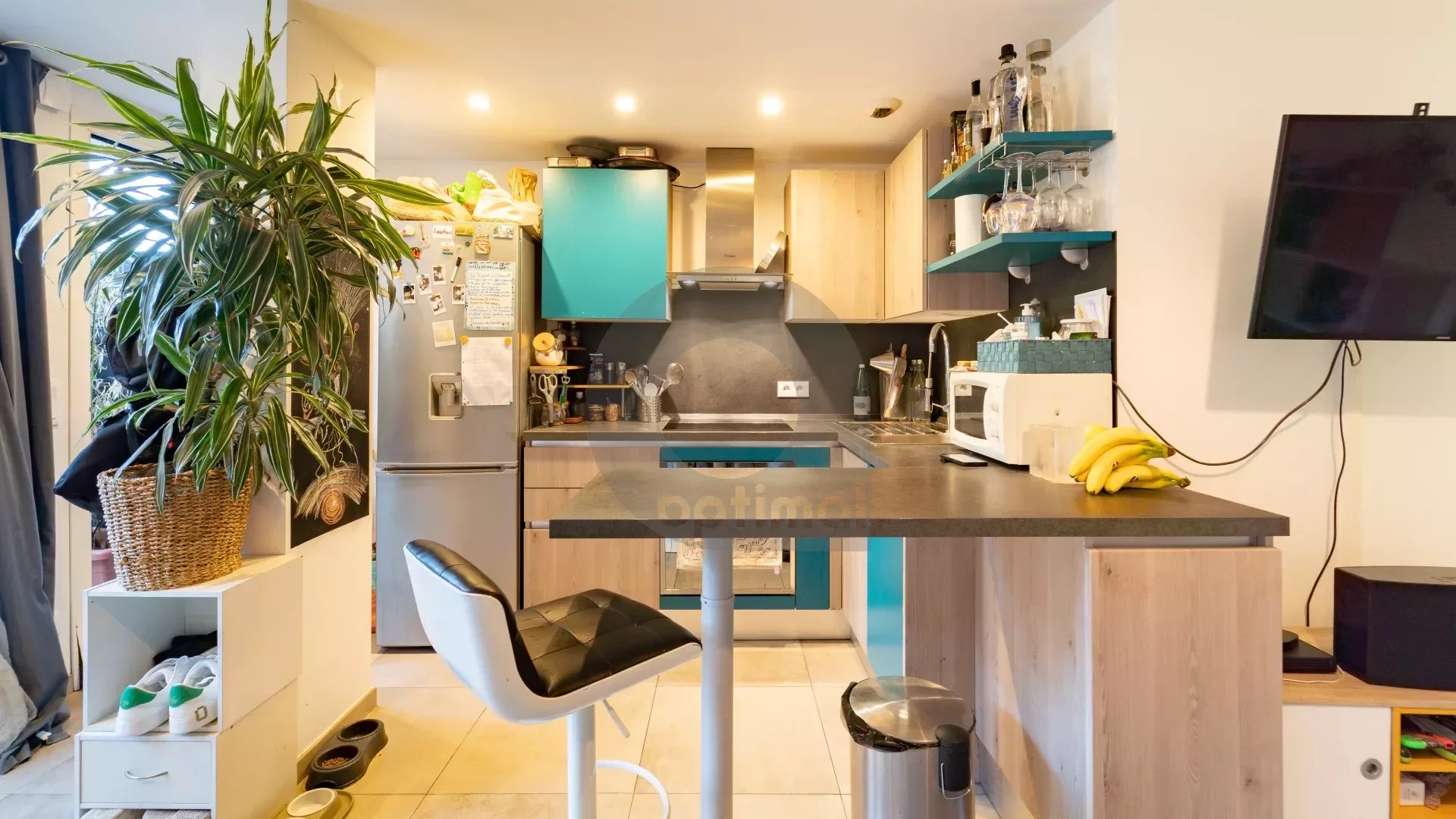 Dans maison mentonnaise entièrement rénovée en 2016, charmant appartement de 2 pièces composé d’un salon avec cuisine américaine fonctionnelle, une chambre à coucher, une salle d’eau avec toilette.