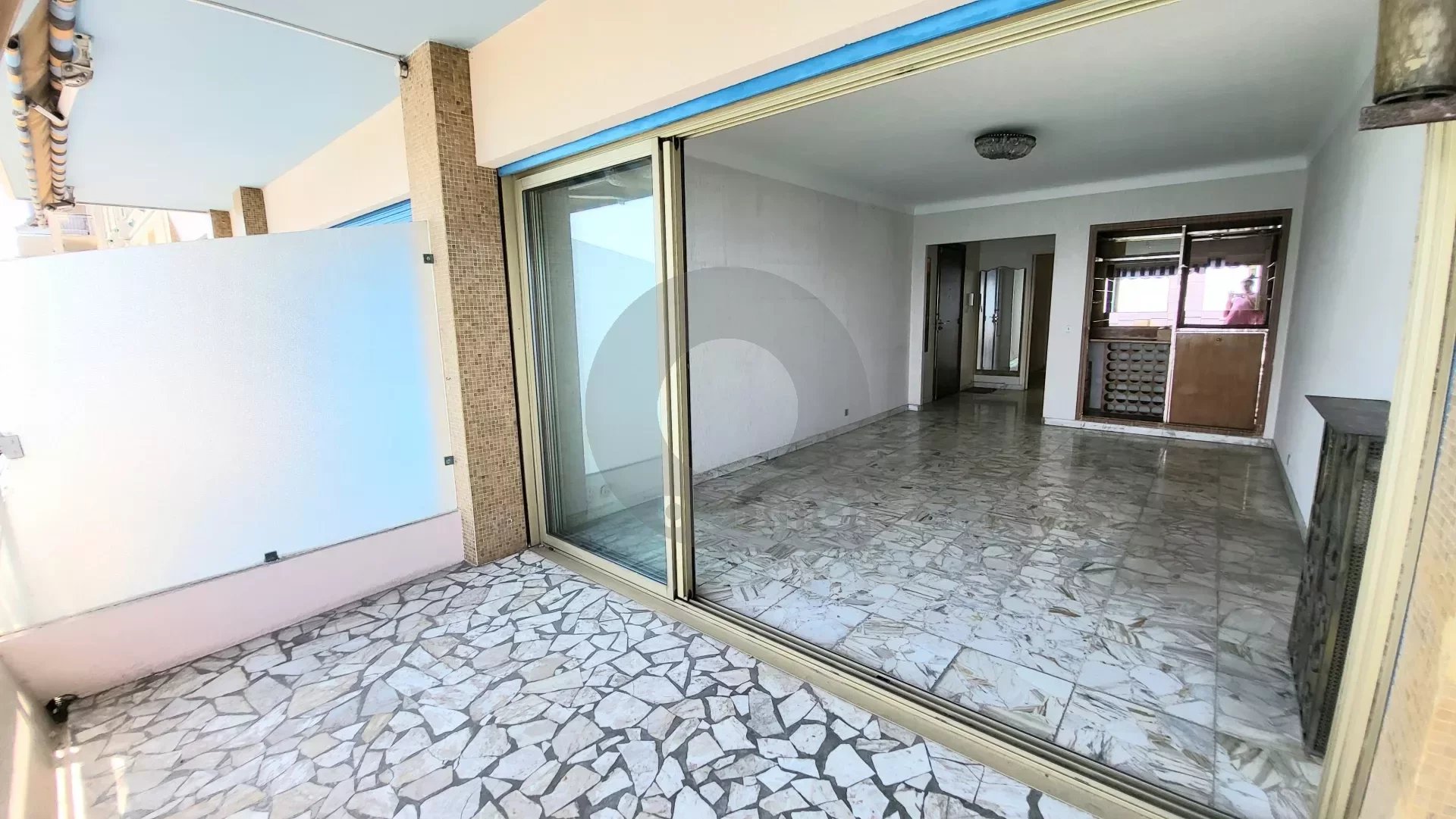 Menton seafront, for sale three-room apartment of 68 M² with terrace, balcony, cellar and parking ( + 25.000 Euro ). The flat benefits from a sea and vegetation view, double exposure, double glazing and air conditioning. Needs renovation.