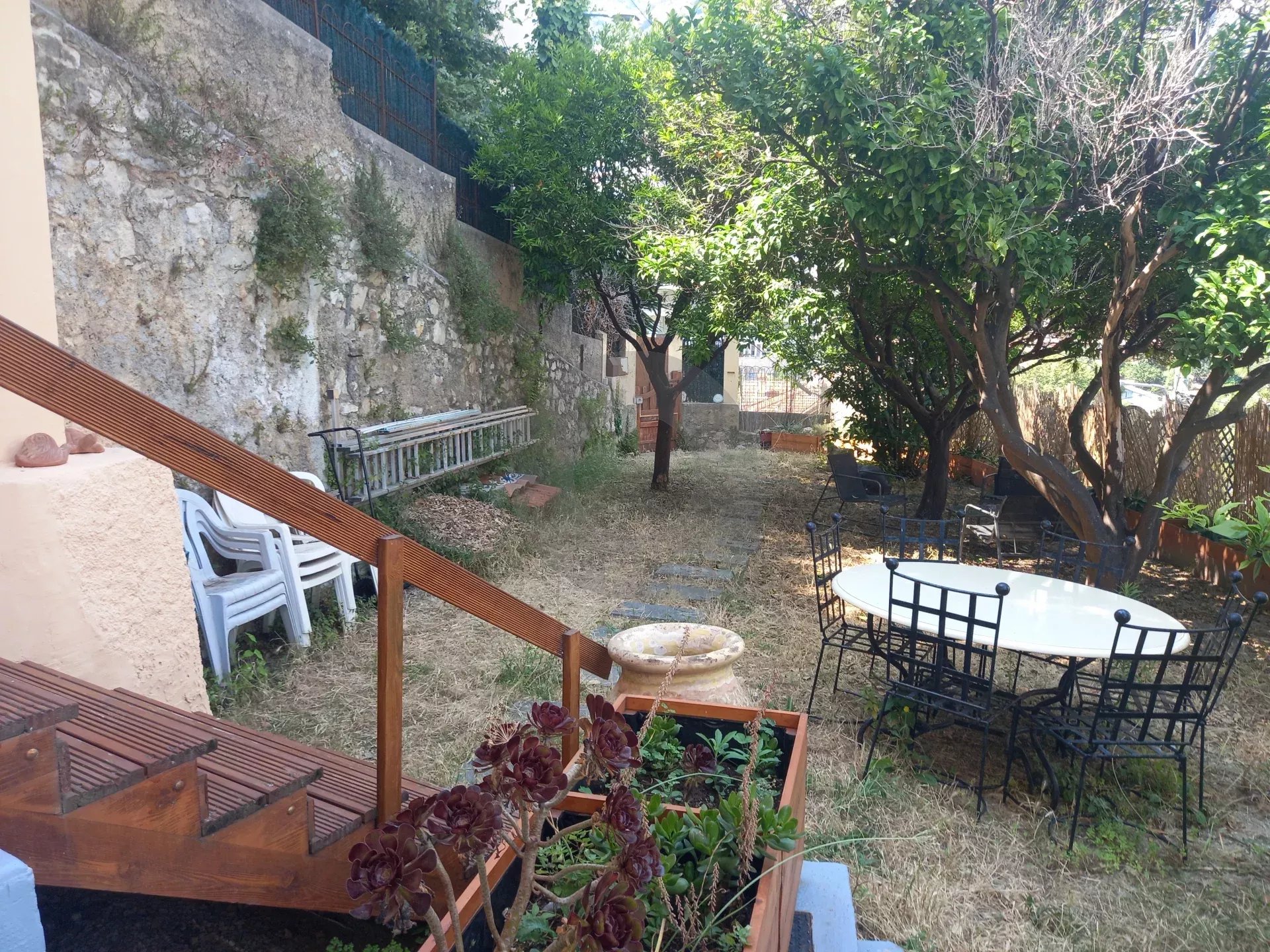 Rare : aux portes de Monaco, agréable 2 pièces avec vue mer et montagnes, beau jardin arboré de 60 m², terrasse 55 m², dans une des dernières petites copropriétés sans charges de ce quartier… Une réelle rareté.