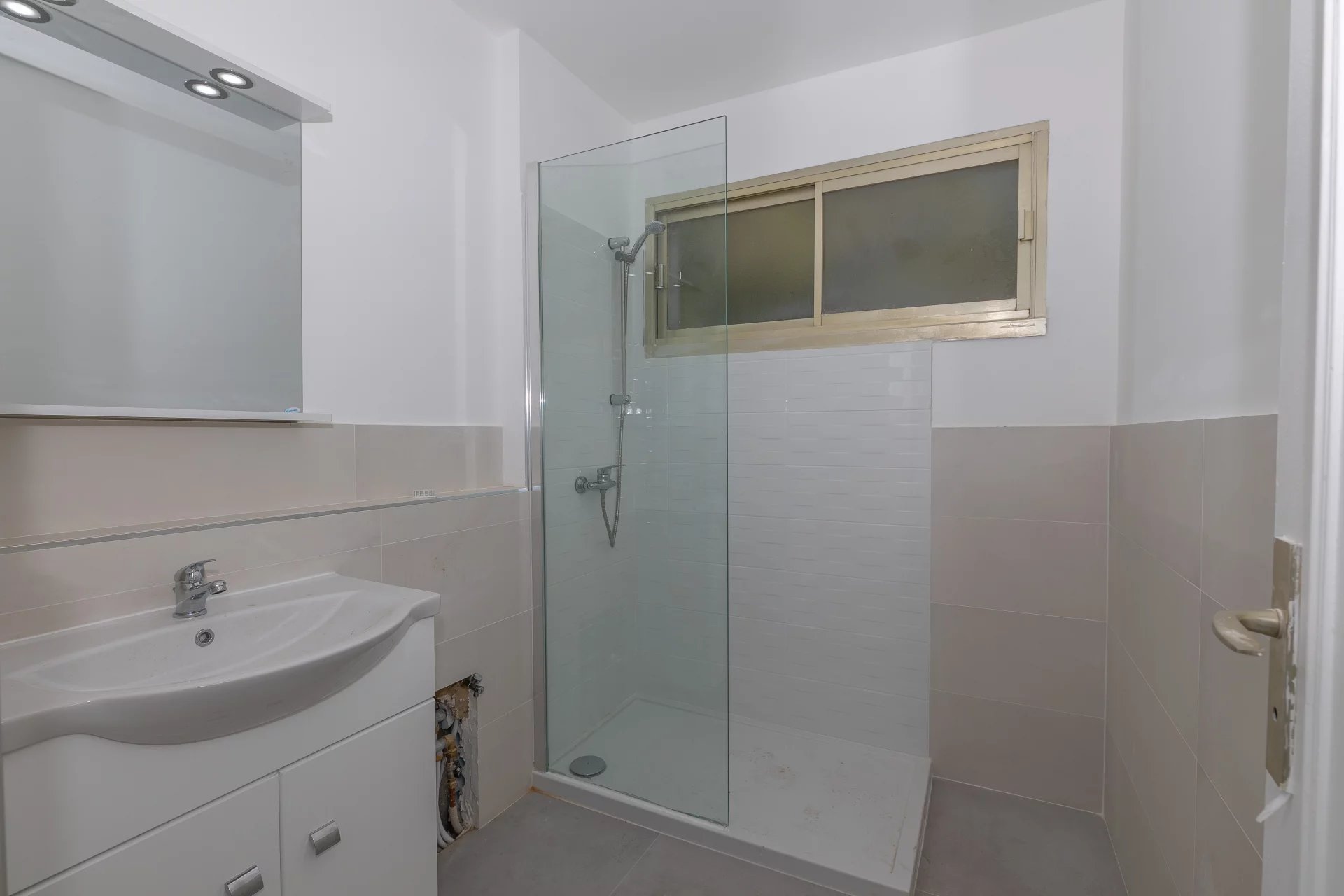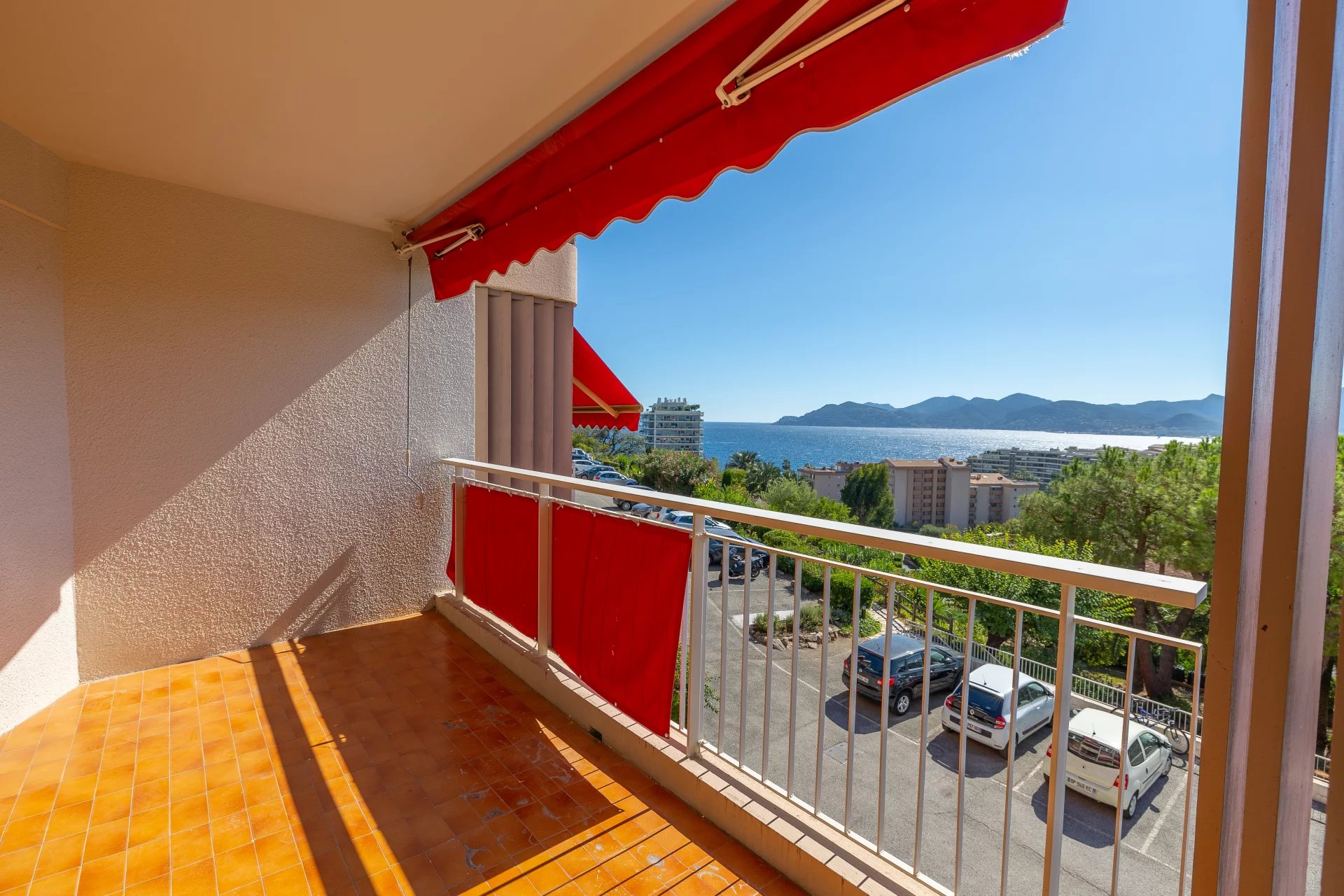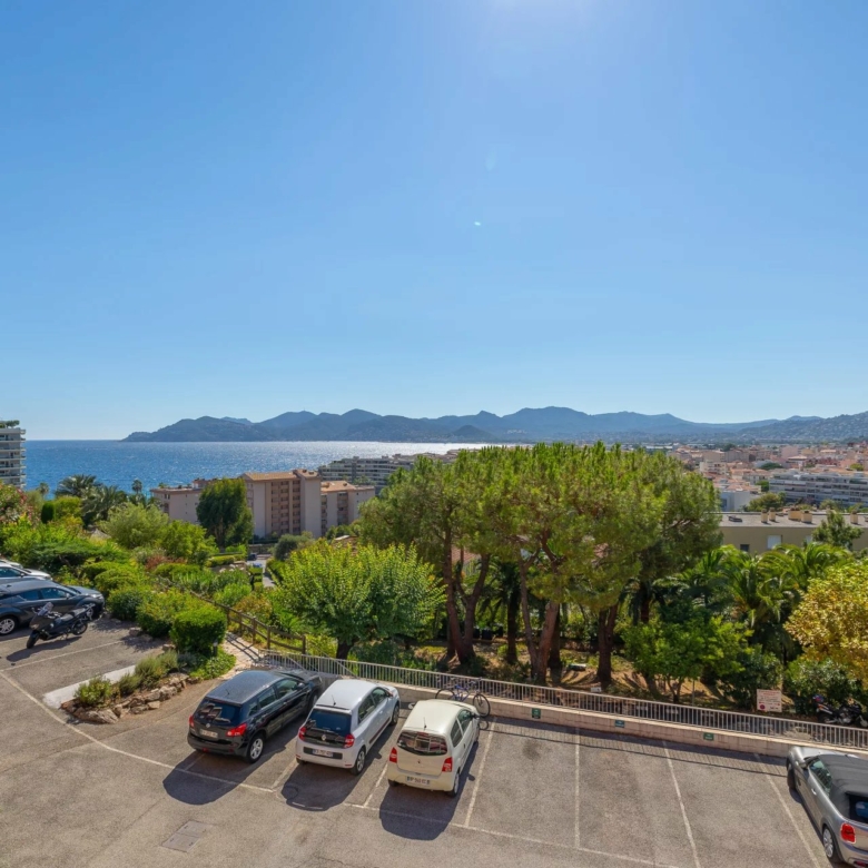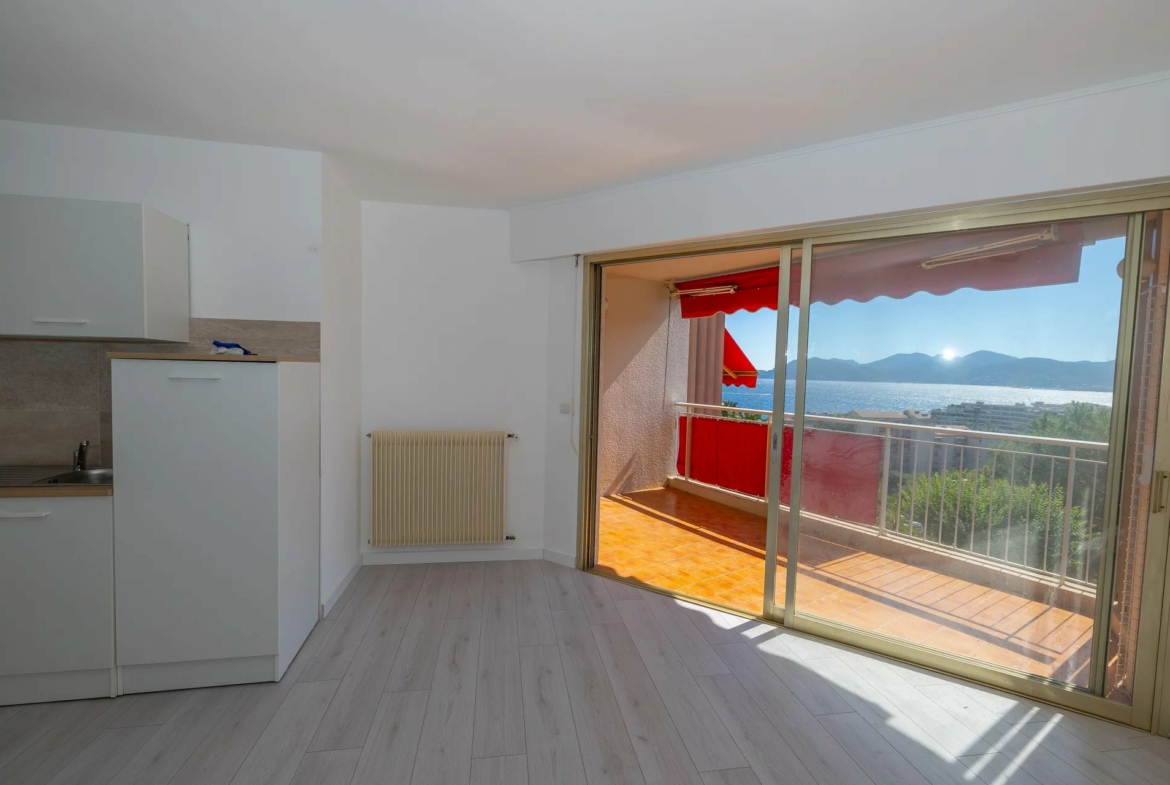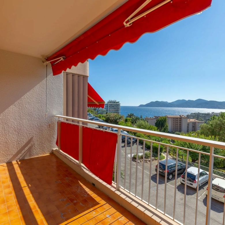 Cannes-la-Bocca: appartement trois pièces rénové exposé sud-ouest, proche toutes commodités, 2ème étage dans une résidence de standing avec piscine et parc, vue panoramique mer. Composé d’ entrée, séjour avec cuisine, salle de douche avec WC séparé, chambre avec placard et petite chambre et terrasse. Parking et cave.