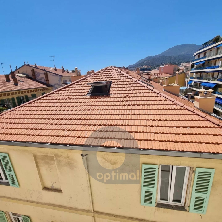 MENTON centre, rue Saint Michel (zone piétonne), dans bel immeuble ancien, charmant appartement type 2 pièces de 36 m² + mezzanine pour un couchage de 4.9 m², situé au 3ème et dernier étage (sans ascenseur).