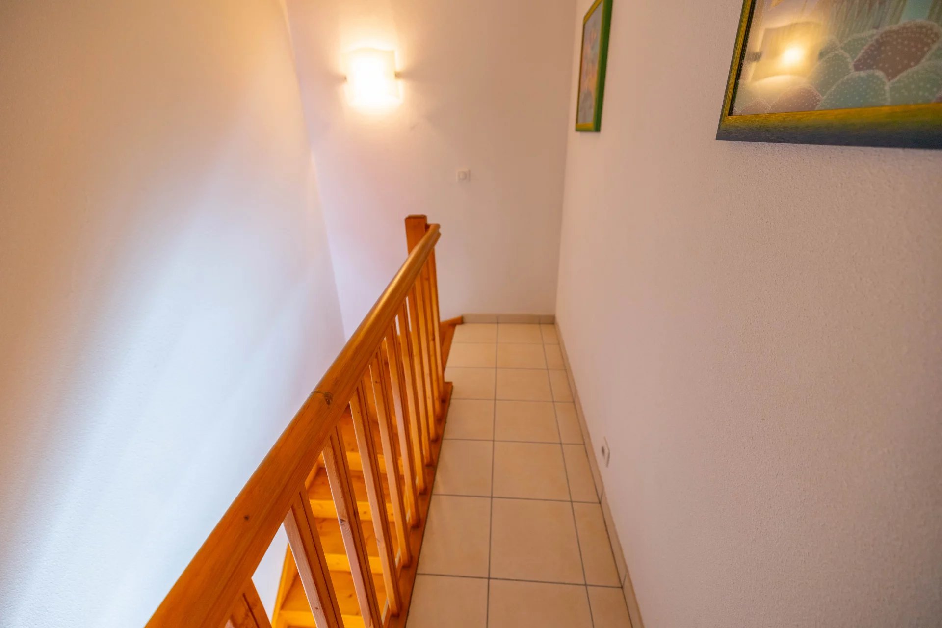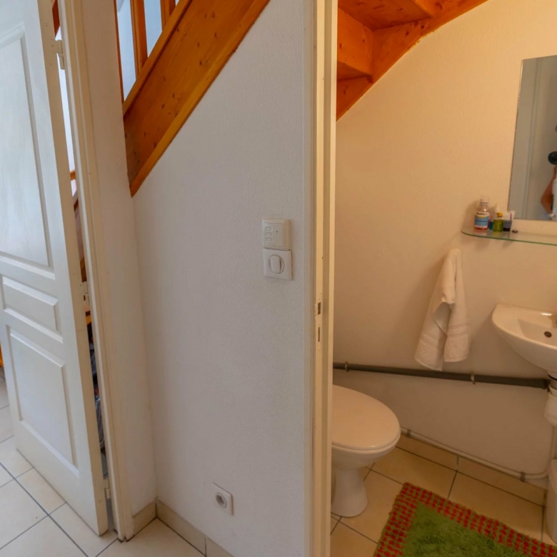 L’étage est dédié à l’espace nuit, composé de deux chambres confortables et d’une salle de bain.