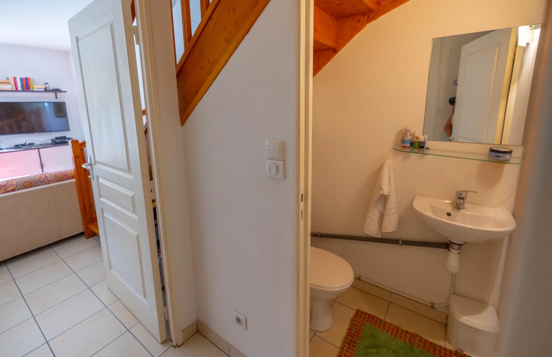 Au rez-de-jardin, vous trouverez un bel espace de vie lumineux avec séjour et cuisine ouverte, ainsi qu’un WC.