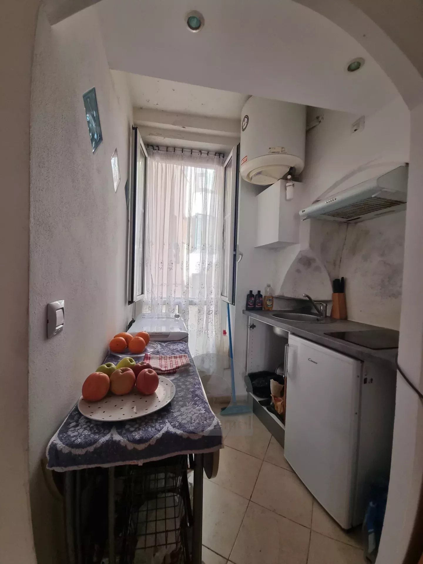 Menton Rue Piétonne, au premier étage d’un immeuble ancien, en bon état général, appartement traversant de type studio, d’environ 18 m², bon état. Actuellement loué par bail meublé en résidence principale du pour un montant de 591.76 € / mois. Les informations sur les risques auxquels ce bien est exposé sont disponibles sur le site Géorisques : georisques.gouv.fr.