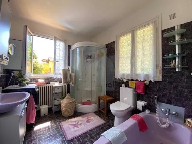 Au 1er étage : deux chambres avec balcon, un débarras, et une salle de bain avec douche et toilette.