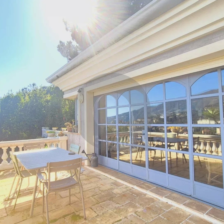 Dans l’un des quartiers les plus prisés de Menton, découvrez cette somptueuse villa construite en 2003, nichée sur un terrain paysager de 2 500 m². Offrant une vue imprenable sur la mer Méditerranée et la vieille ville pittoresque de Menton, cette propriété allie charme, confort et élégance.