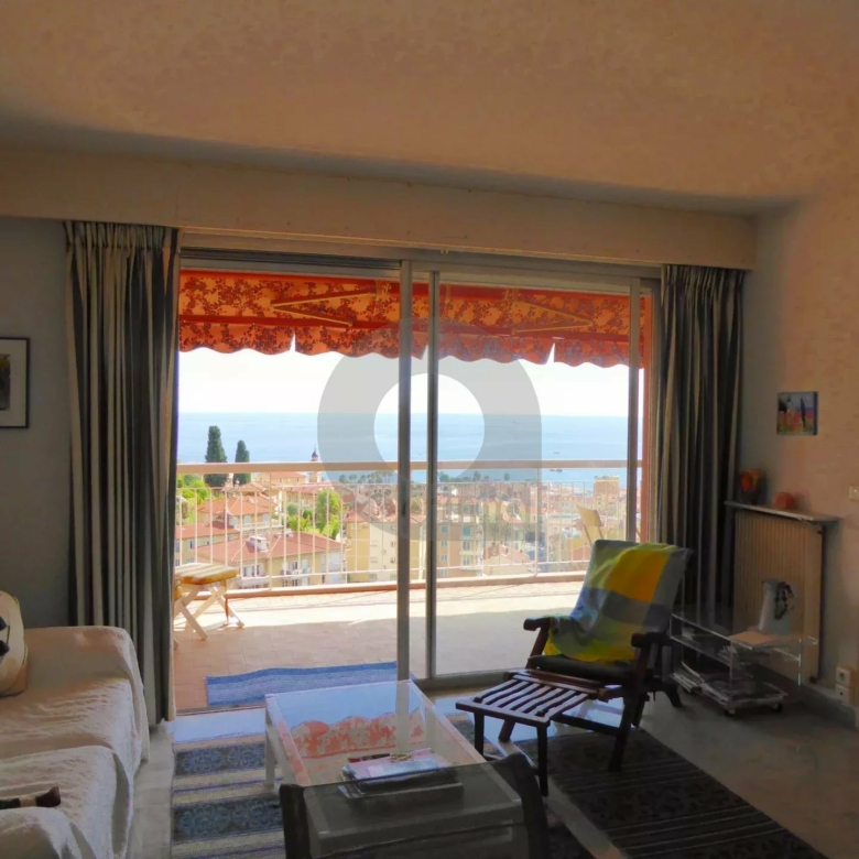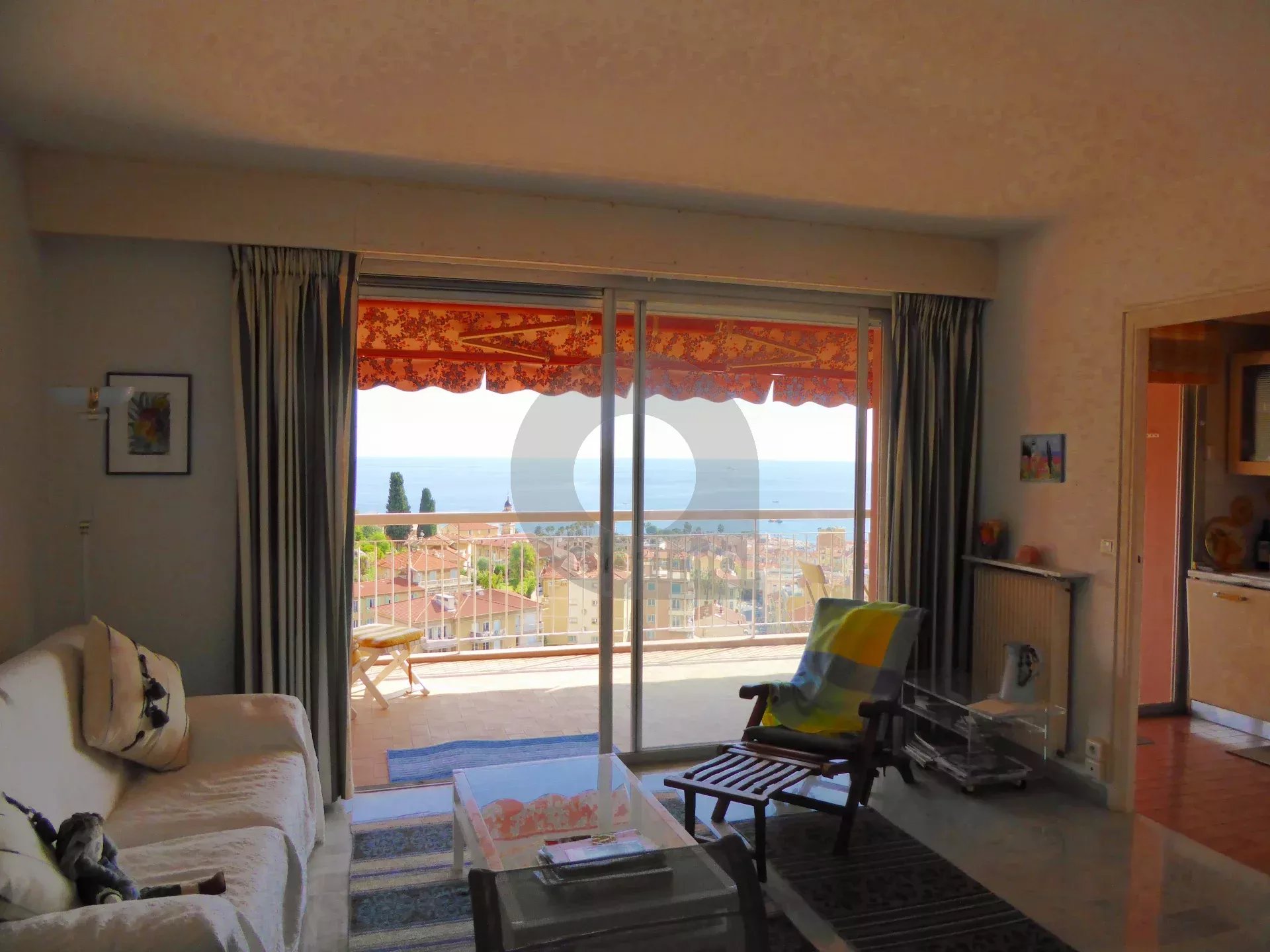 Menton “Terres Chaudes” à deux pas du Centre ville de Menton et du Centre Historique, Spacieux Studio de 35 m2 ouvrant sur une grande terrasse, Vue mer Panoramique, Cuisine équipée indépendante, vendu entièrement meublé, PARKING SOUS-SOL et CAVE