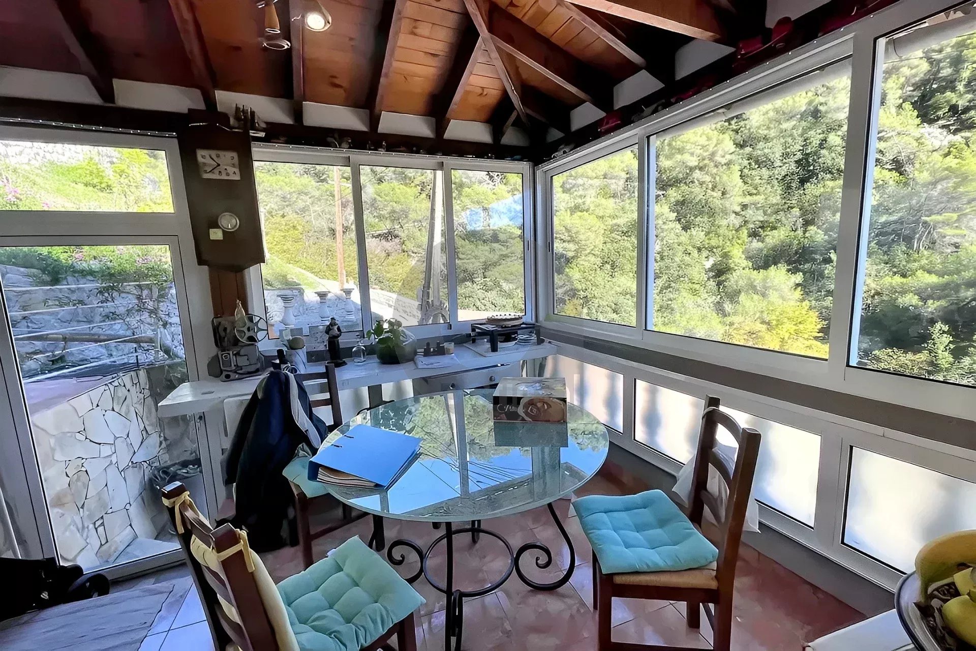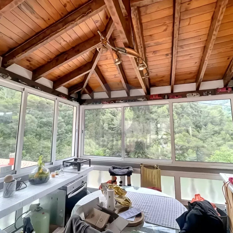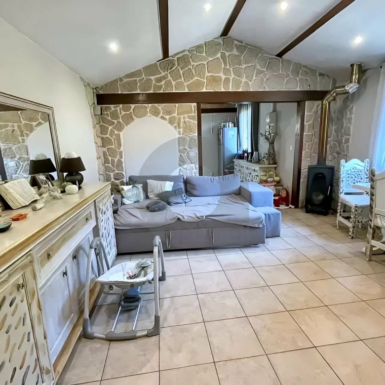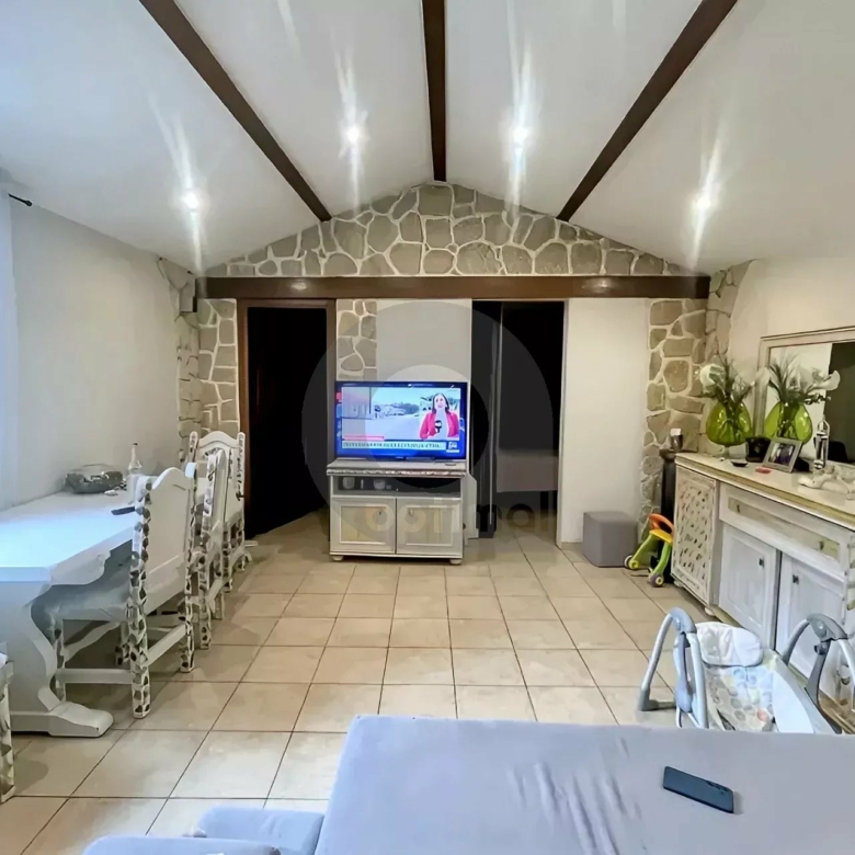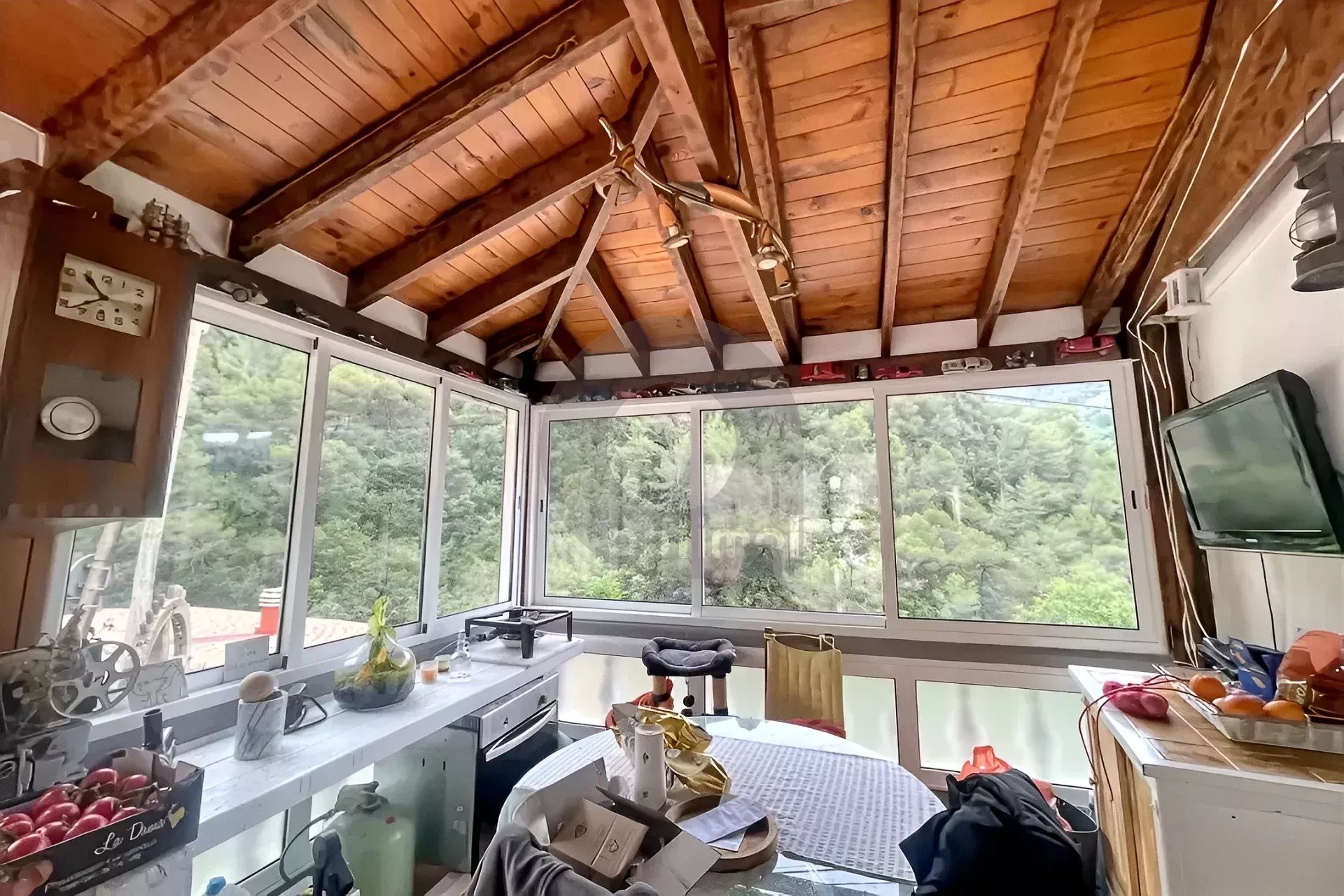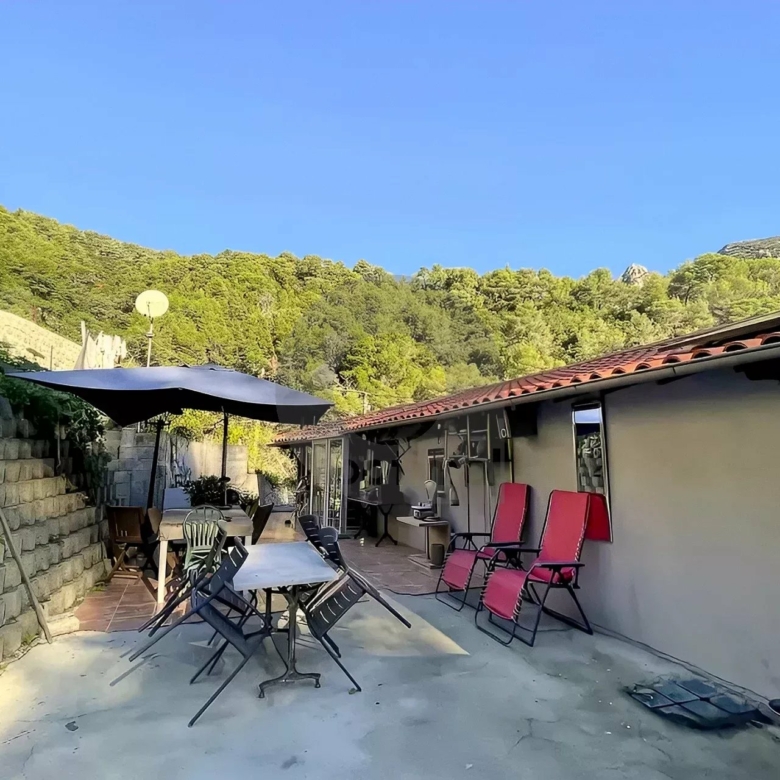L’appartement du haut 2P 44m.21² + véranda de 12.71m² profite d’une grande terrasse et d’un jardin et est équipé de panneaux solaires.