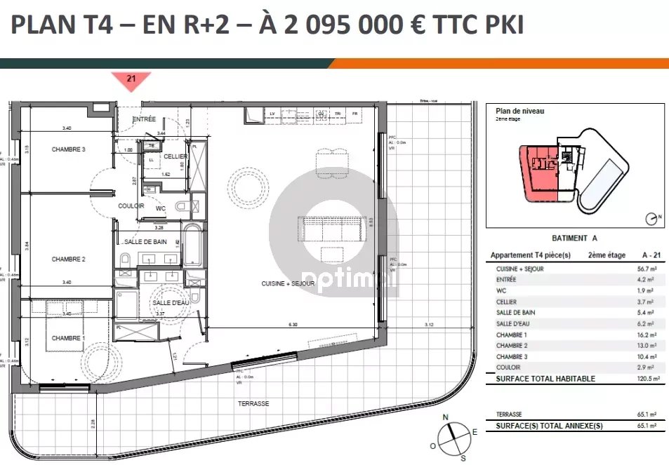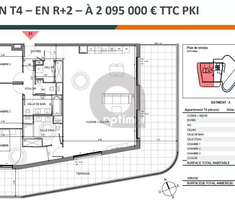 – dernier étage (2ème) / 116 m², terrasses 162 m² : 2.097.000 €.
