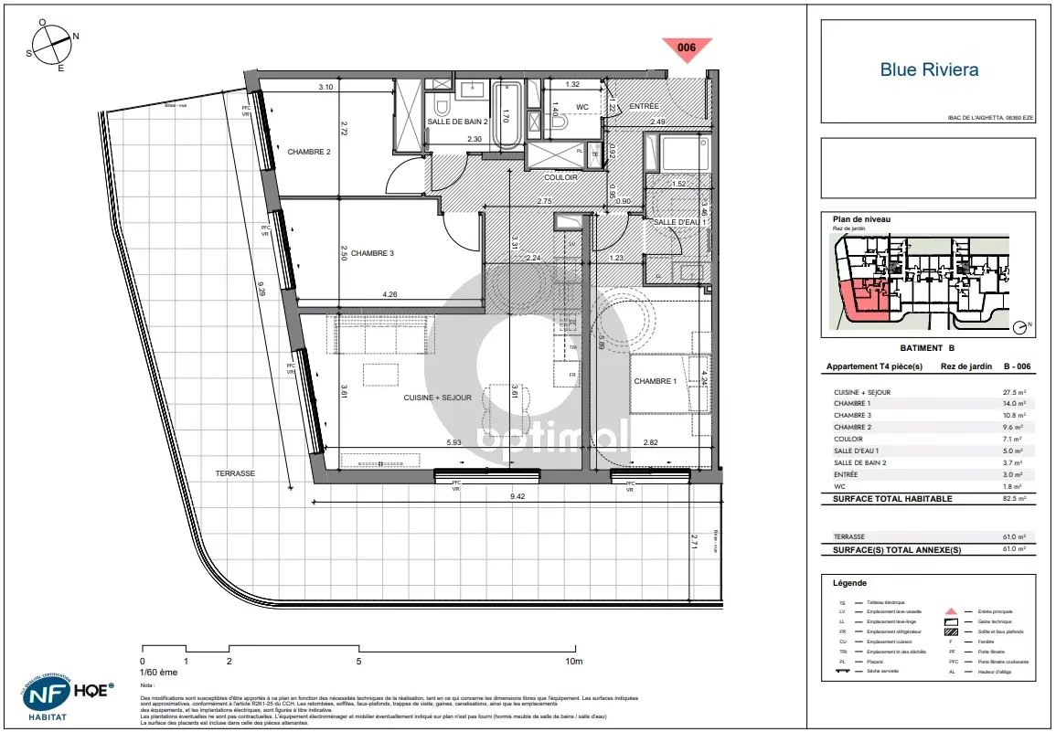 – Rez-de-jardin / 83 m², terrasse 61 m² : 899.000 €.
