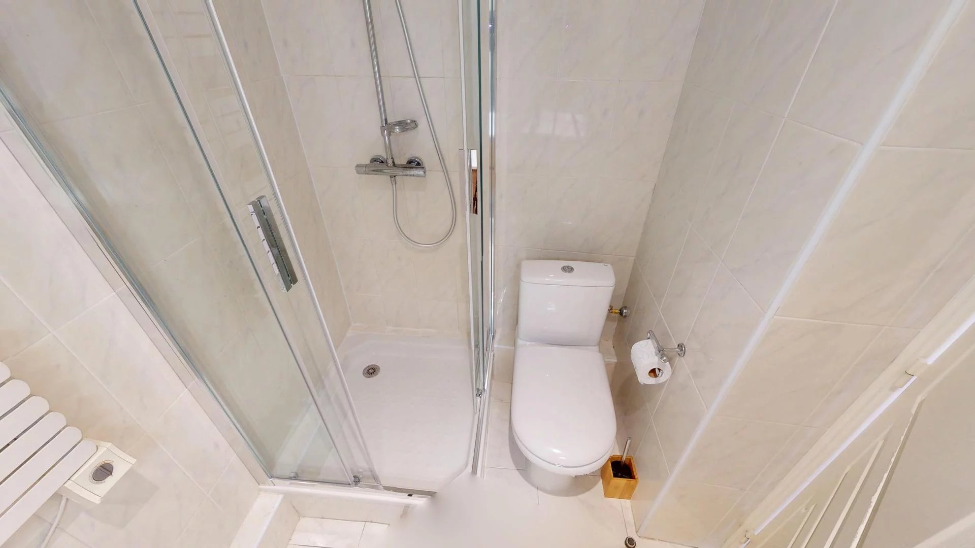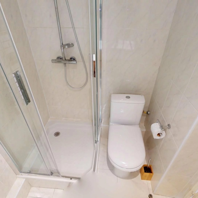 Salle d’eau avec douche, lave-linge et WC.