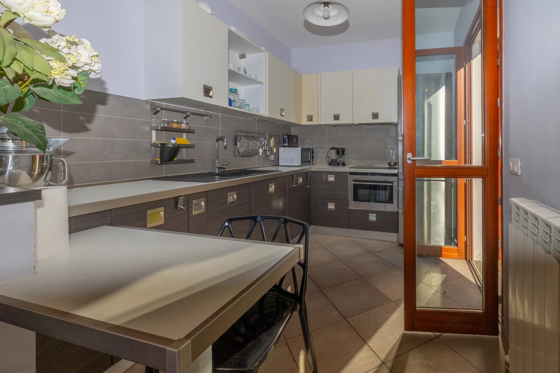 L’intérieur moderne est conçu pour le confort et l’efficacité, avec un système de climatisation pour maintenir une atmosphère agréable toute l’année. Les grandes fenêtres permettent une abondance de lumière naturelle, mettant en valeur les finitions élégantes et l’aménagement bien pensé.