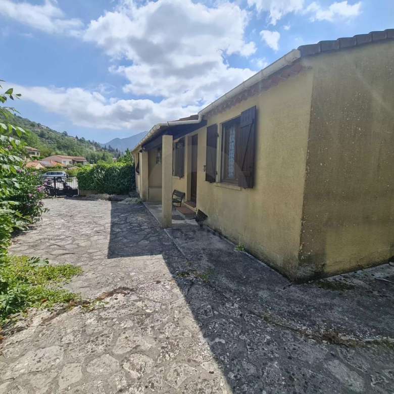 Maison jumelée à vendre dans un lotissement au calme sur les bord de la Bévéra avec jardin garage. Ce bien se trouve dans une association syndical libre lotissement avec des charges courantes annuelles de 550 euros. Cette petite villa de 89,31 m² à rafraîchir se compose d’une entrée, cuisine, séjour, deux chambres, salle d’eau avec douche, wc séparé, une grande pièce faisant office de débarras, un beau jardin entoure cette maison avec une garage. Cette maison est située sur la commune de SOSPEL non loin du centre ville. idéal pour une famille pour un achat en résidence principale.