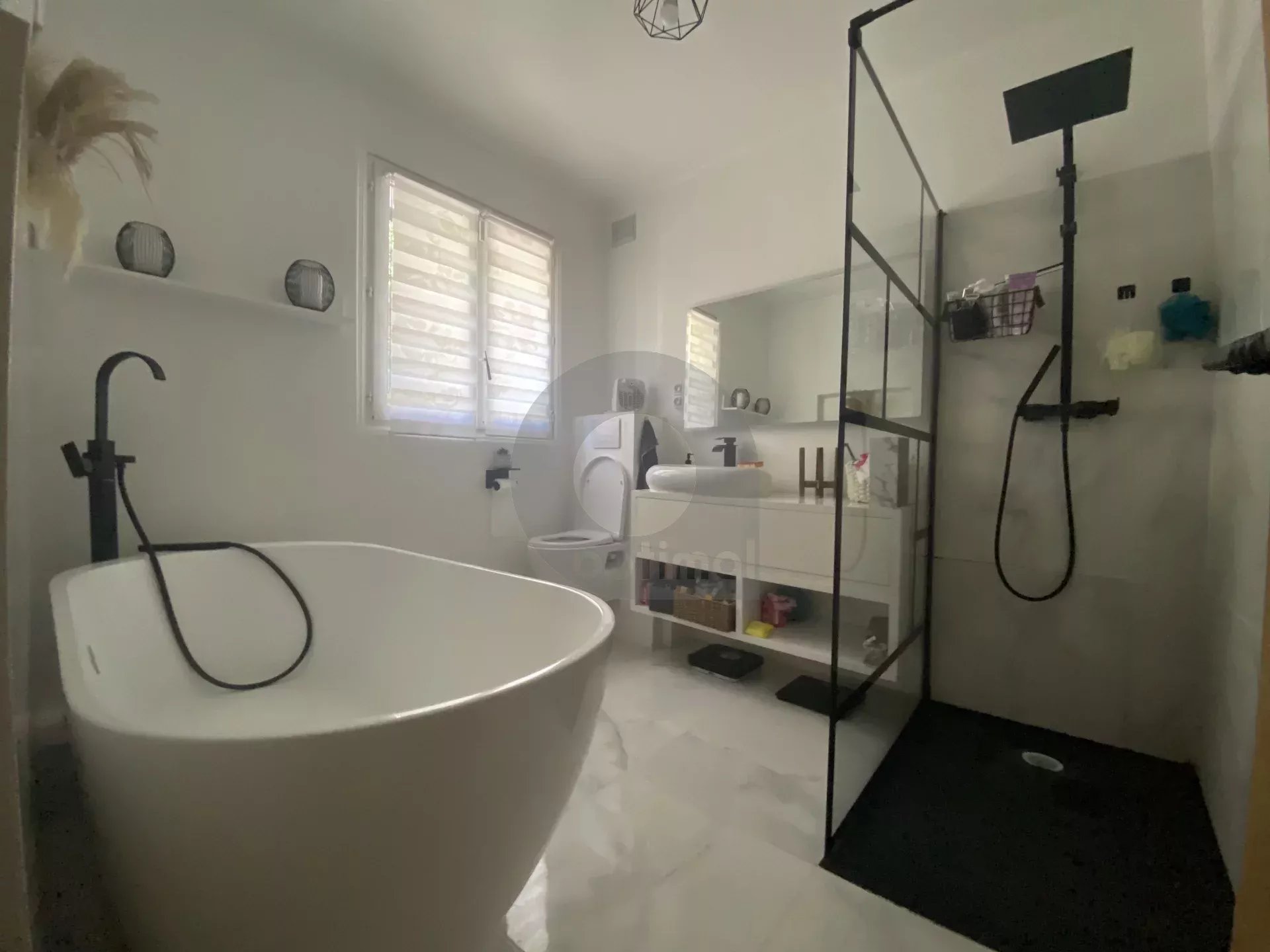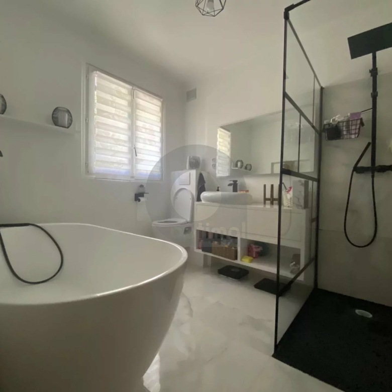 À l’extérieur, profitez d’un splendide jardin arboré d’arbres fruitiers, doté d’un système d’arrosage intégré et d’une source, parfaits pour préserver la verdure luxuriante. Une piscine hors sol vous attend pour des moments de détente.
