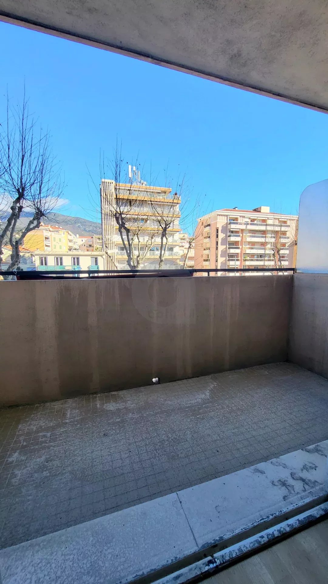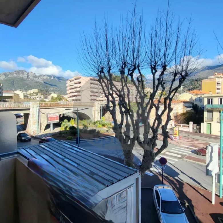 A Mentone, a 200 m dal lungomare, in un edificio degli anni ’60, bilocale di 45 m² con due balconi e una cantina. L’appartamento è composto da ingresso, cucina, camera da letto, soggiorno, bagno con doccia e WC separato. Posto auto collettivo.