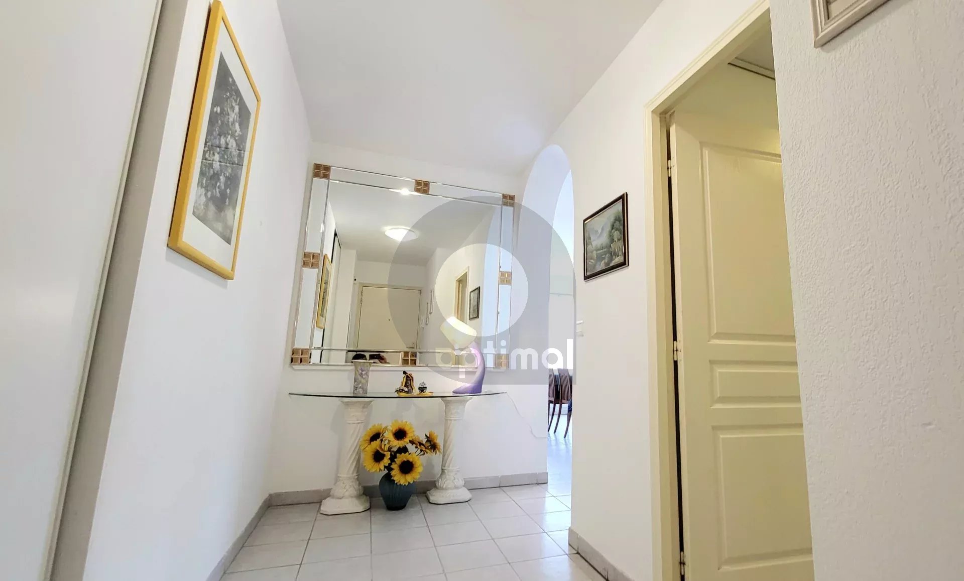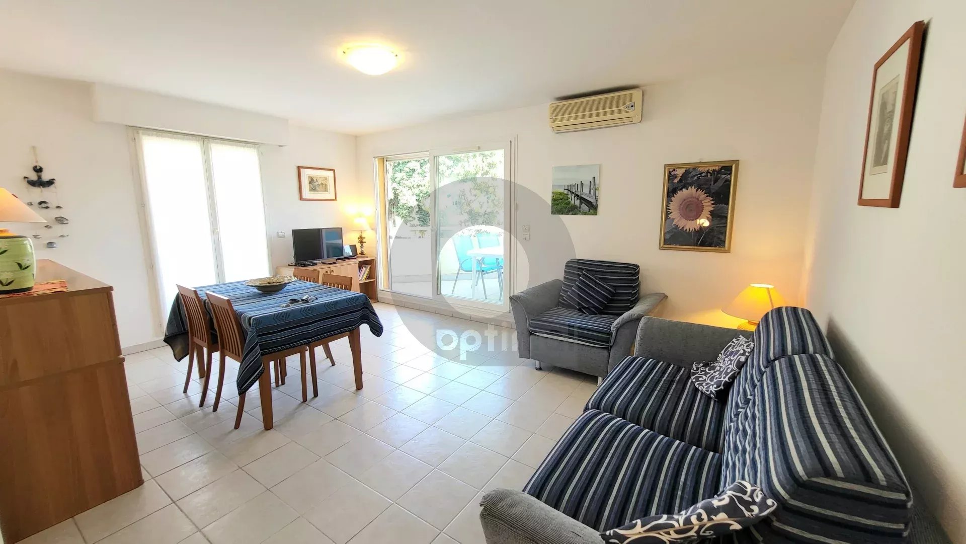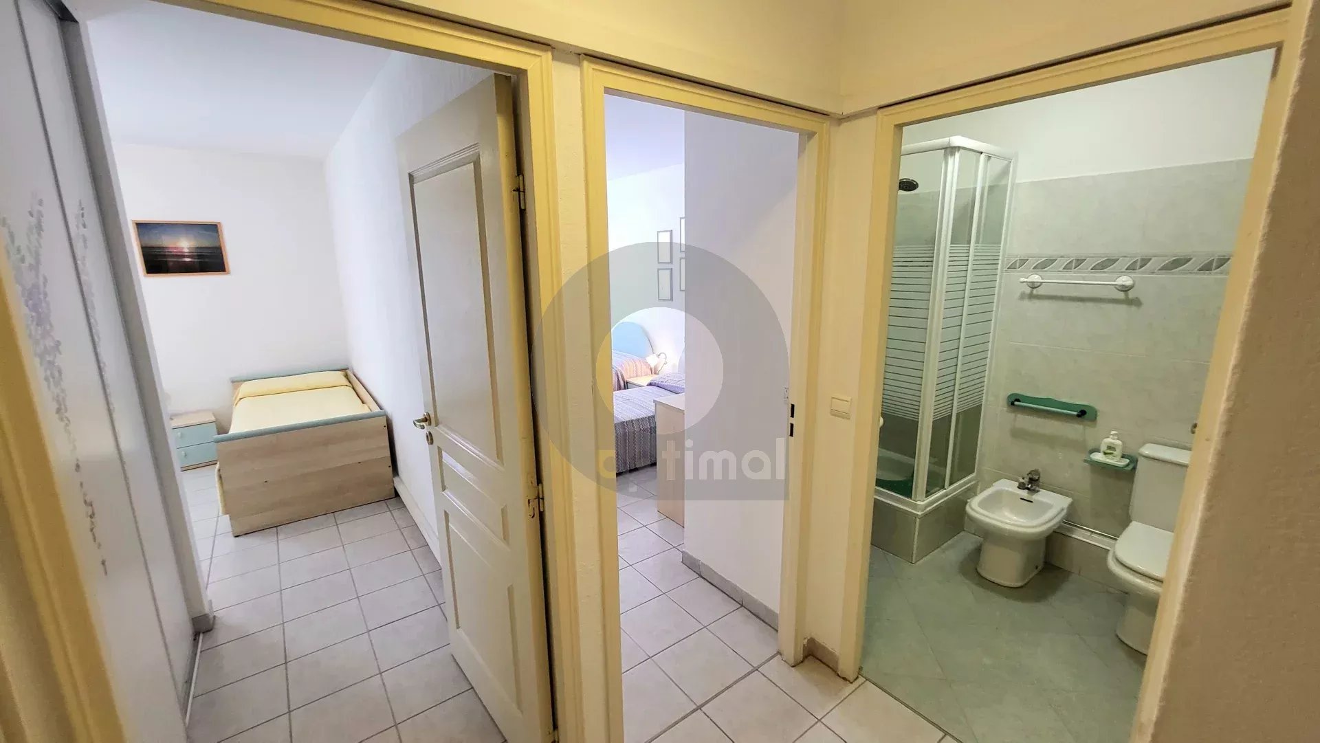 EXCLUSIVITY: 150 m from beaches and shops, in a luxury building, pleasant 3-room apartment of approx.68 m² with terrace and garage (+ 40,000 euros). The flat comprises an entrance hall with cupboards, a living room opening onto a terrace, a fitted kitchen opening onto a balcony, a bedroom with cupboards and access to the balcony, a second bedroom, a storage room, a shower room with wc and bidet. In good condition. Bright
