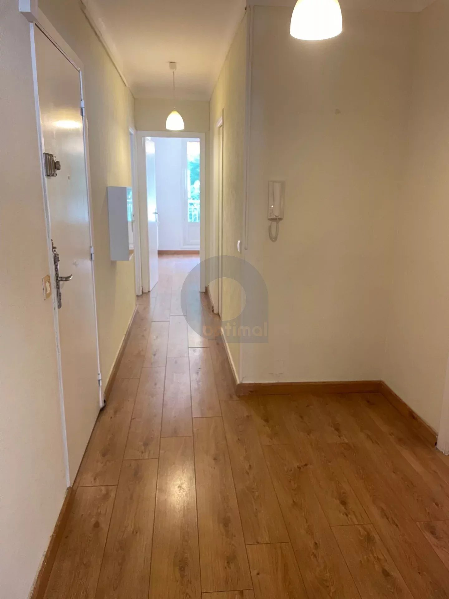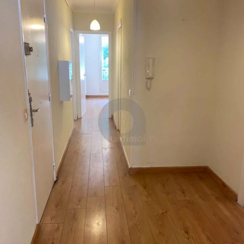 L’appartement, d’une superficie de 55,44 m², se compose d’une entrée avec placard de rangement, wc indépendant, séjour donnant sur un balcon côté rue, couloir, salle de bains, cuisine aménagée et chambre, les deux donnant sur un second balcon côté verdure.