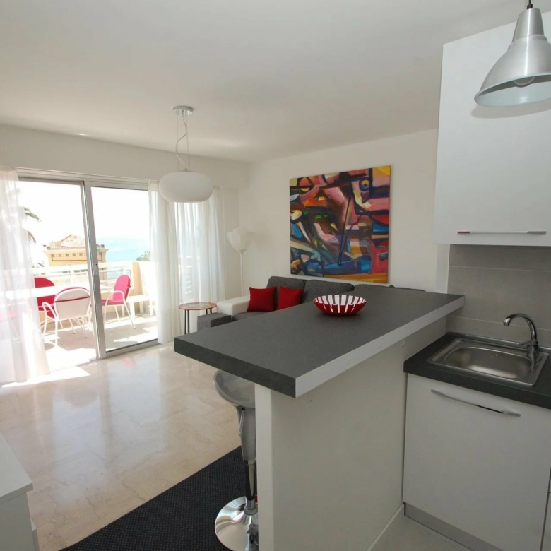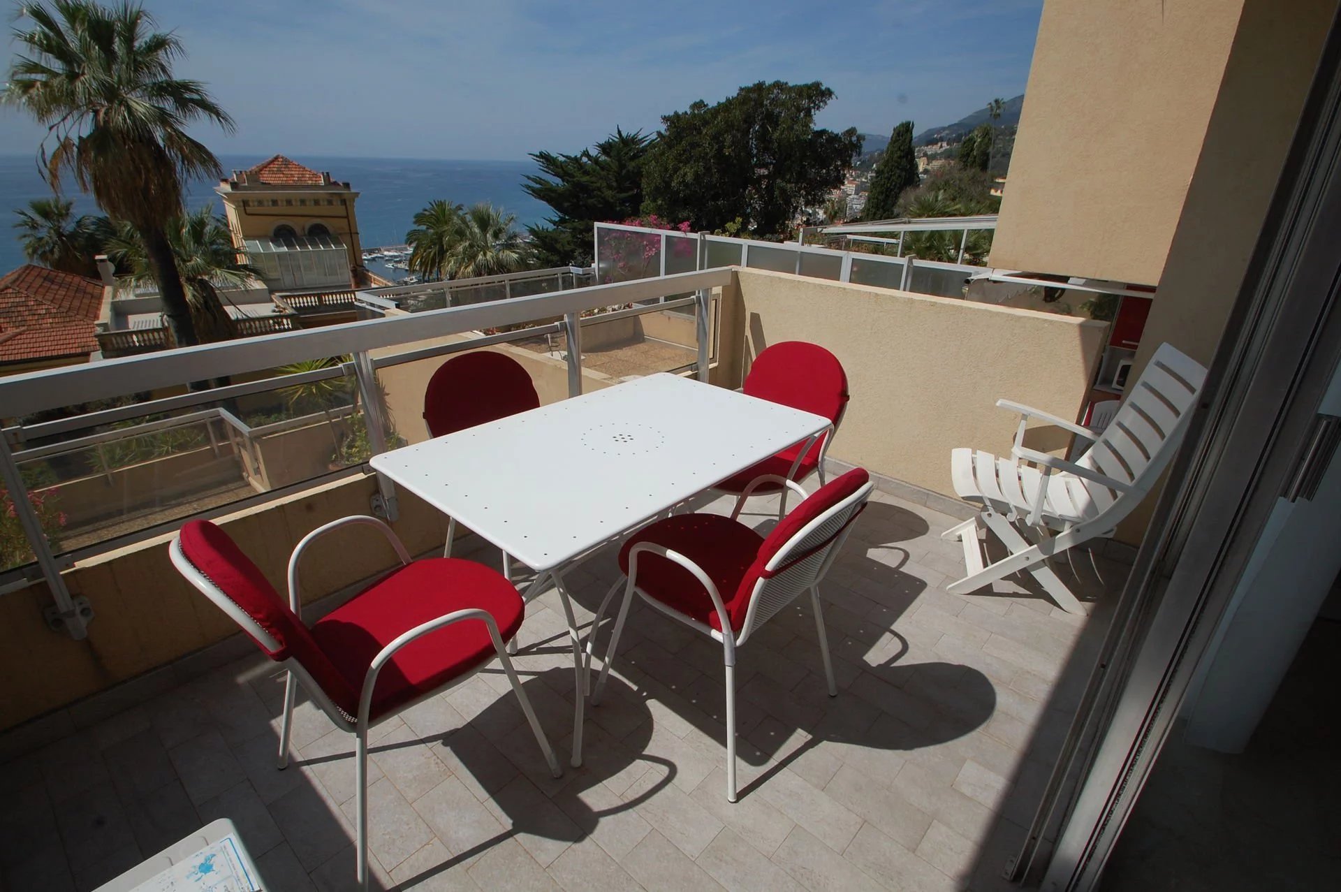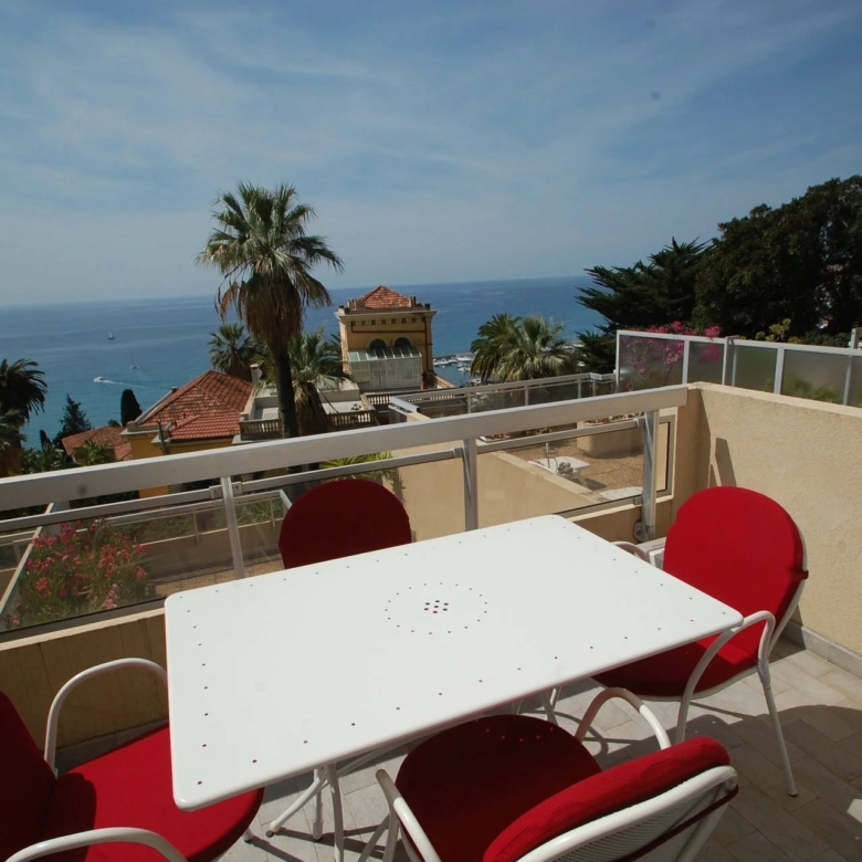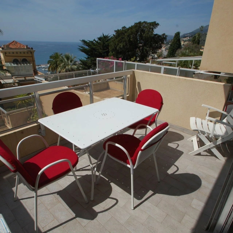 EXCLUSIVITE’ – dans belle copropriété sur le Boulevard de Garavan, charmant deux pièces de 38.30 m2 avec terrasse au calme, vue magnifique sur la mer et la baie de Menton. Exposition sud . Garage fermé au rez de chausssée avec cave attenante.