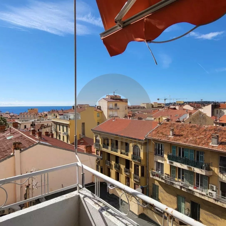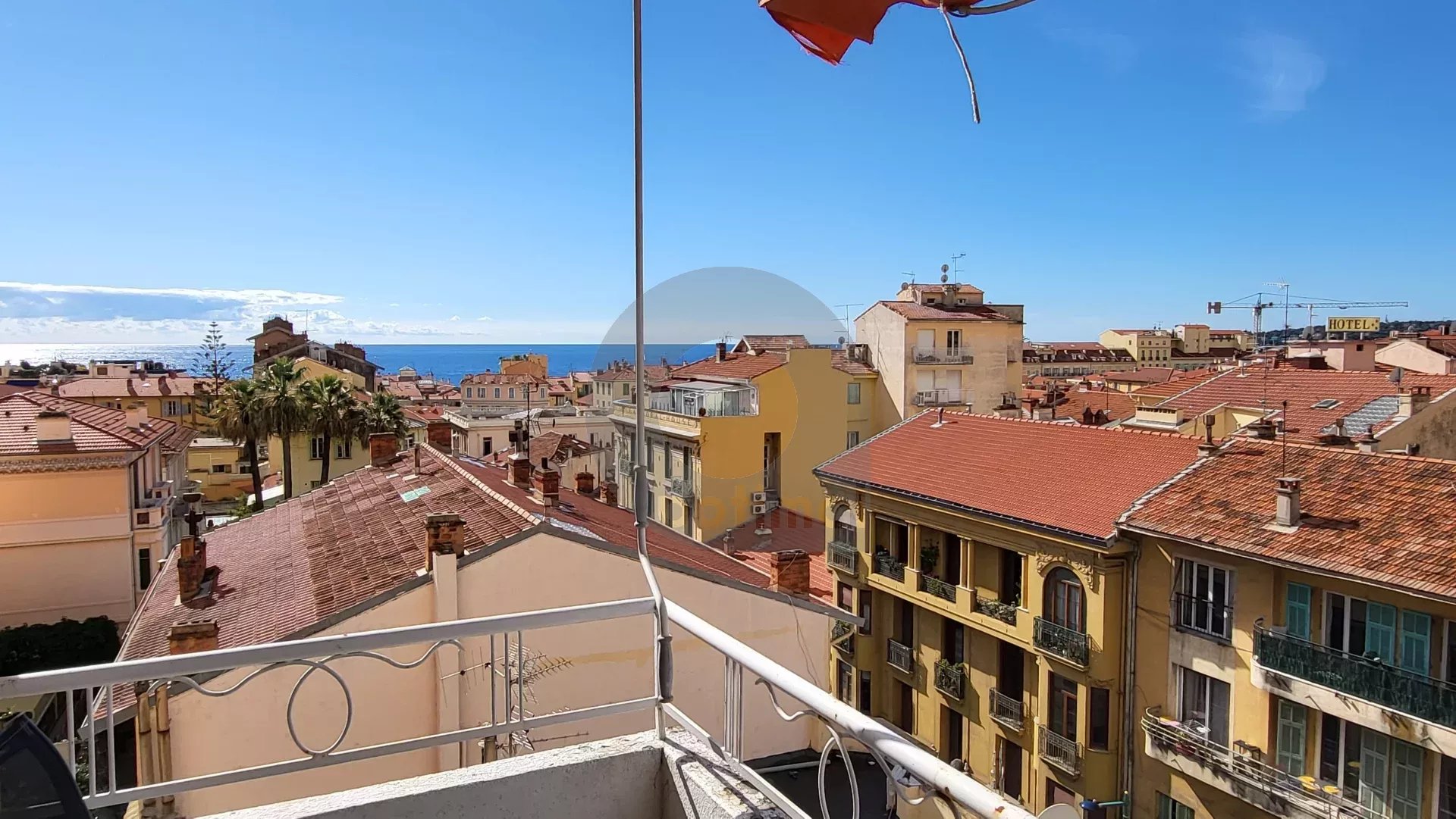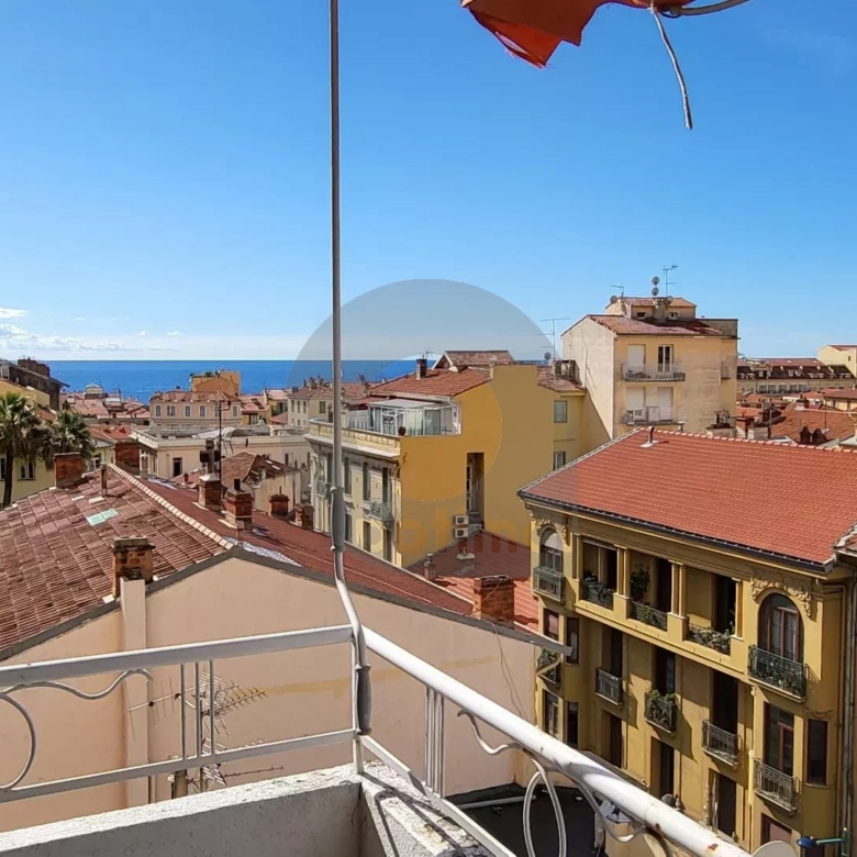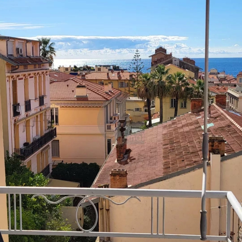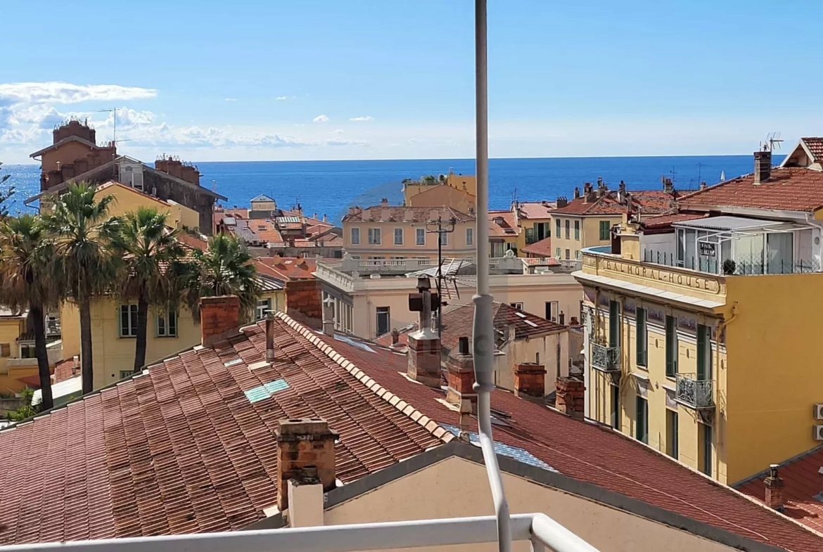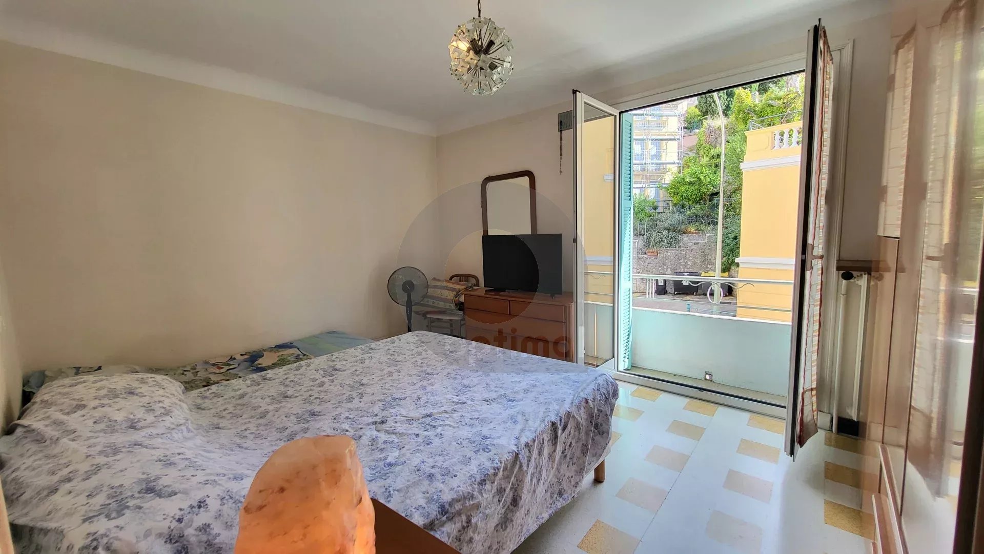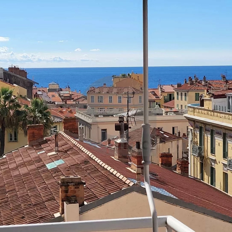 Menton city center: 250m from beaches and pedestrian street, spacious 55 m² two-bedroom apartment with balcony. This apartment benefits from triple exposure, a panoramic sea and town view, calm and bright. The apartment comprises an entrance hall, a living room opening onto the balcony, a bedroom, a kitchen, a bathroom and an indiv. toilet with window.