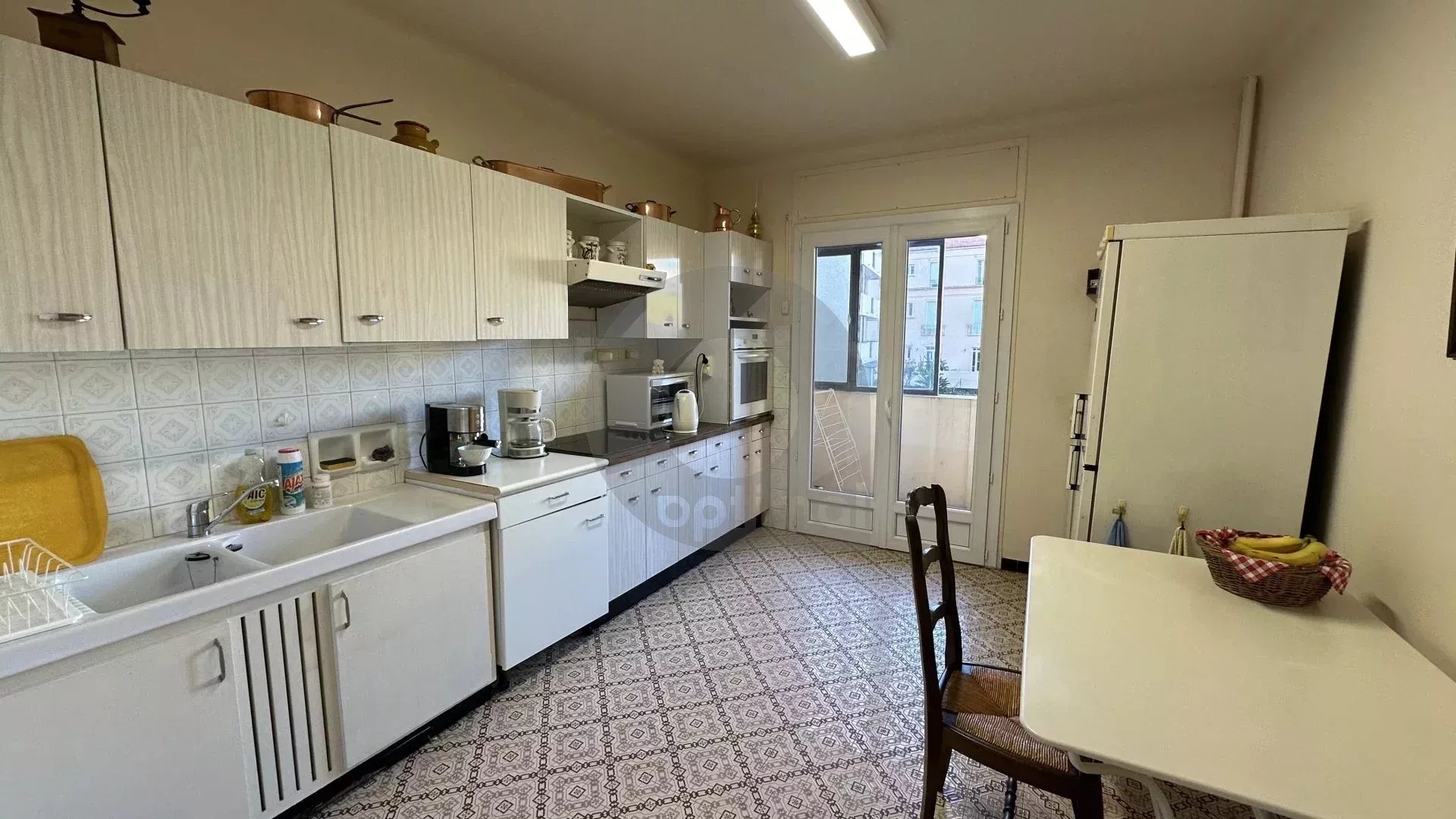 Dans une résidence de bon standing située en centre ville à proximité immédiate du bord de mer et à deux minutes à peine à pieds des Jardins Biovès, notre Agence vous propose à la vente en viager occupé un grand appartement trois pièces d’une superficie loi carrez de 94,58 m² comprenant un hall d’entrée avec penderie, WC, une cuisine indépendante, un dégagement, une salle d’eau avec WC, un dressing, deux chambres donnant sur balcon côté Nord, un séjour donnant sur balcon côté Sud. Le tout en excellent état général. Vue dégagée montagnes et mer.