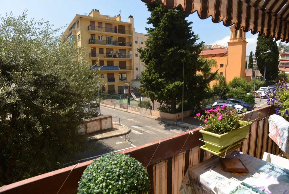 En EXCLUSIVITE’ dans le prisé quartier de Garavan, agréable deux pièces de 49 M² avec belle terrasse de 13 M², parking et cave.
