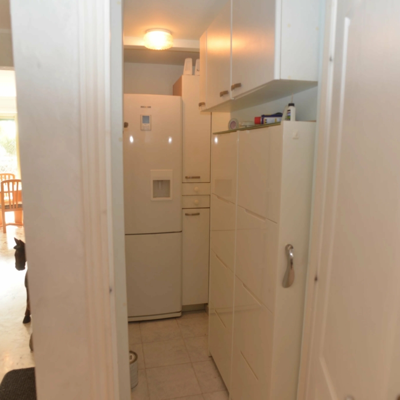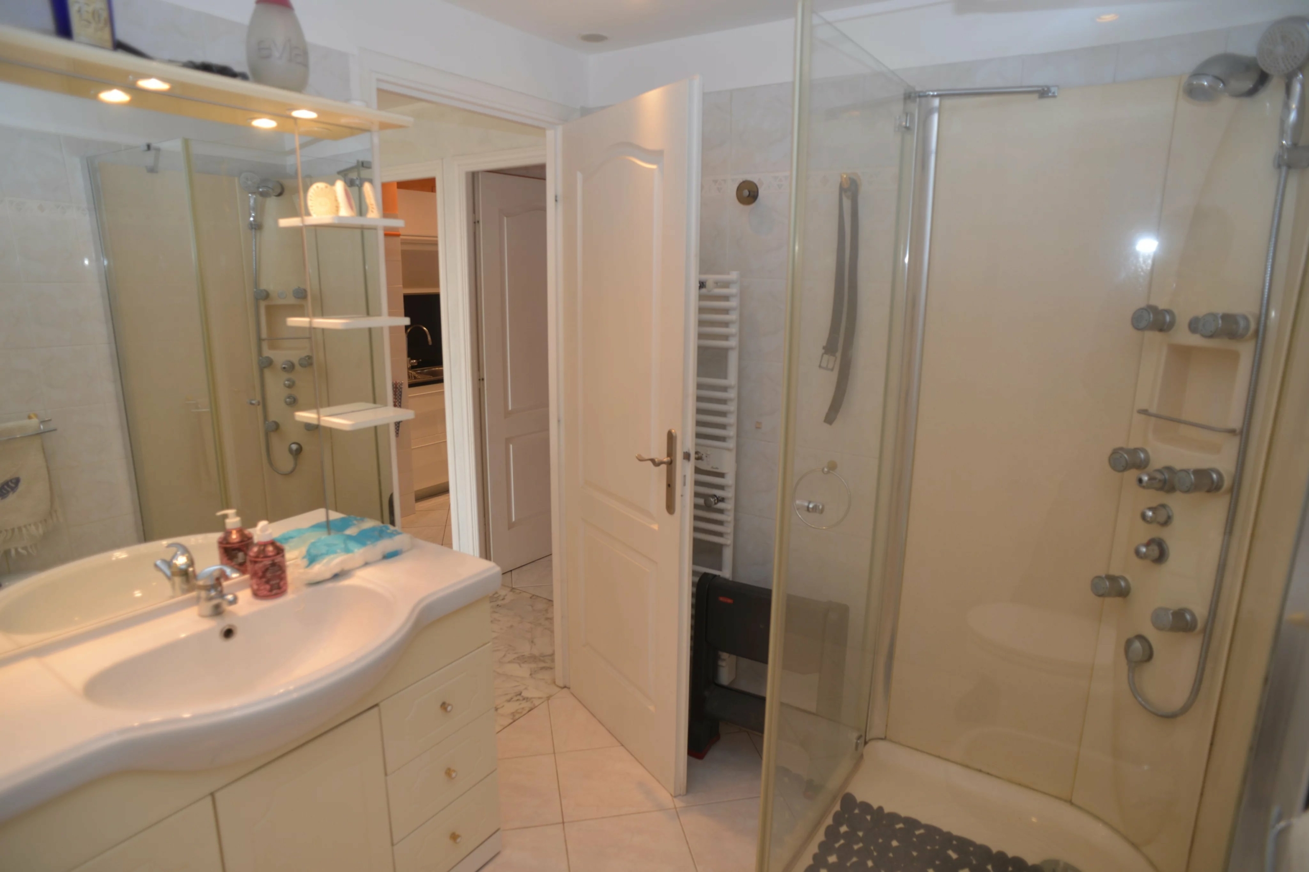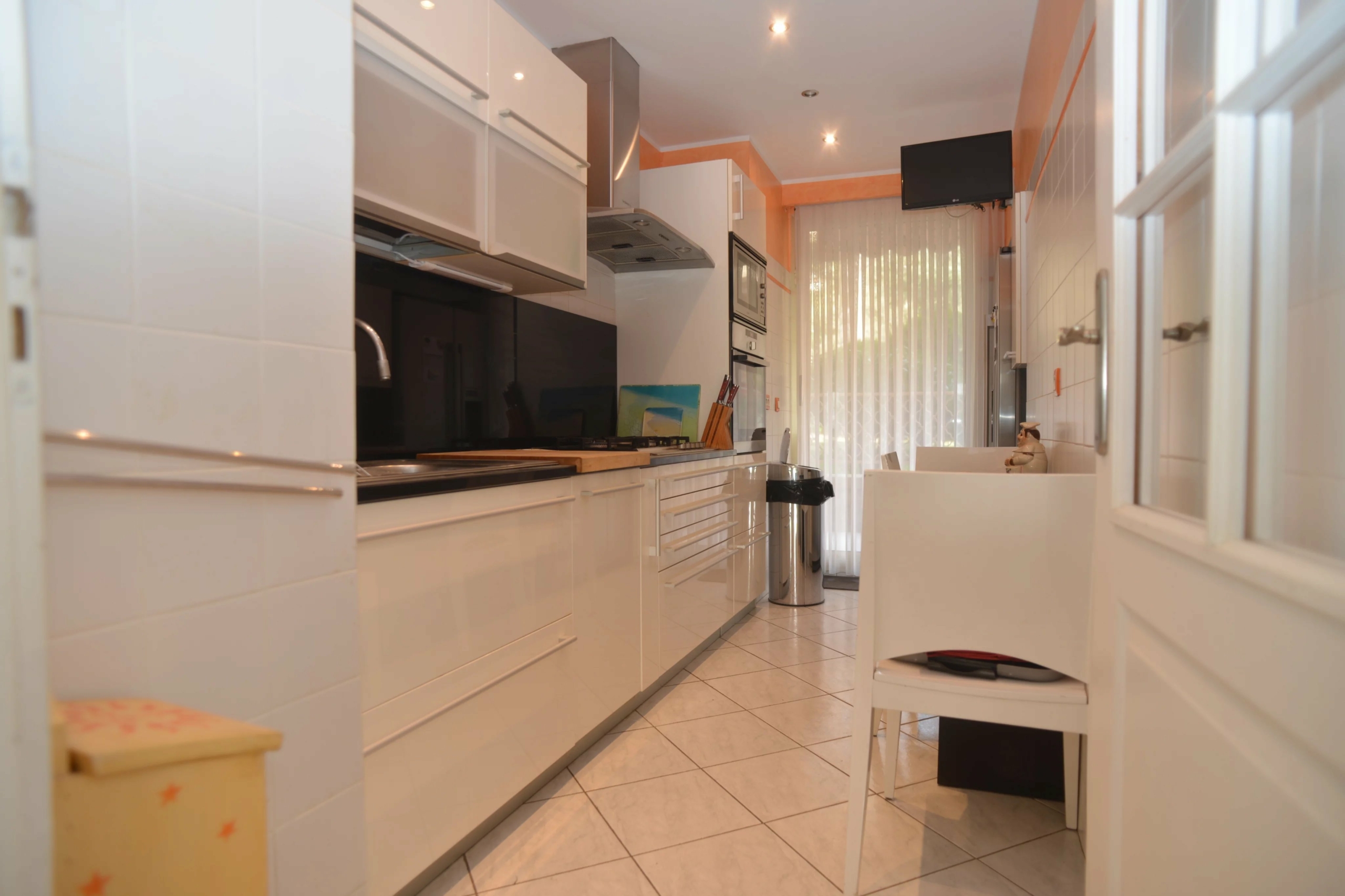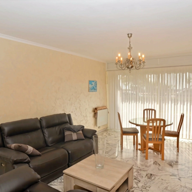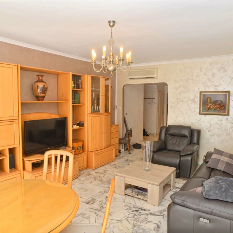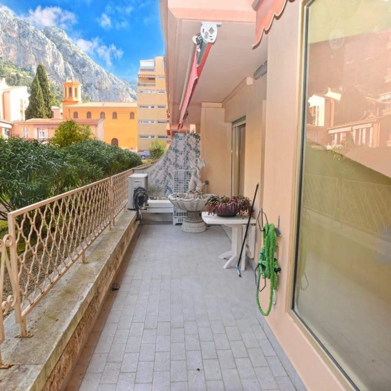 Dans une résidence sécurisée en front de mer, un grand deux pièces traversant de 65 m² avec un balcon au sud de 6 m² et terrasse au calme de 14 m². Il se compose d’une entrée avec placard et débarrasse, un grand séjour – salle à manger donnant sur le balcon exposé sud, une cuisine indépendante toute équipée et grande chambres donnant sur la terrasse au calme avec vue sur le parc de la résidence, une salle d’eau avec douche et WC. Nous avons aimé sa luminosité, ses volumes, la calme et son accès direct aux services (arrêt de bus, gare SNCF, port et bord de mer de Menton Garavan). Un garage au sous-sol est disponible en plus à 52.000€.