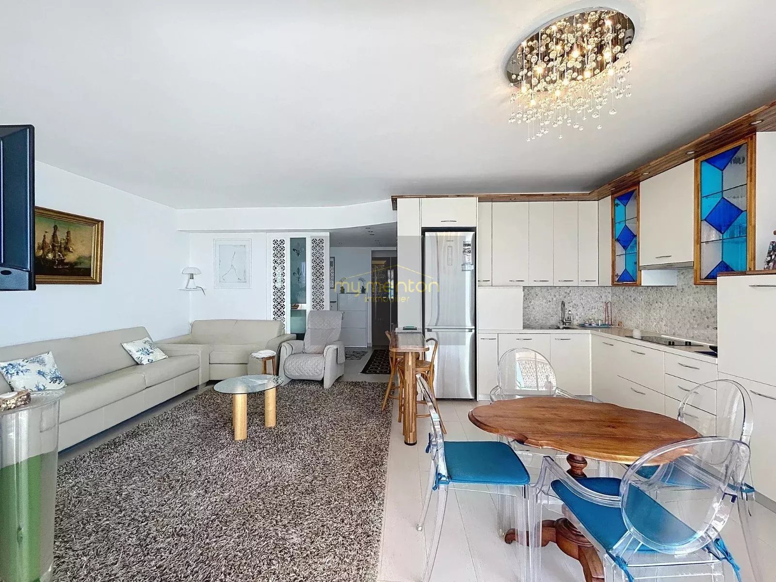 L’appartement est vendu entièrement meublé avec un mobilier haut de gamme, alliant élégance et confort.