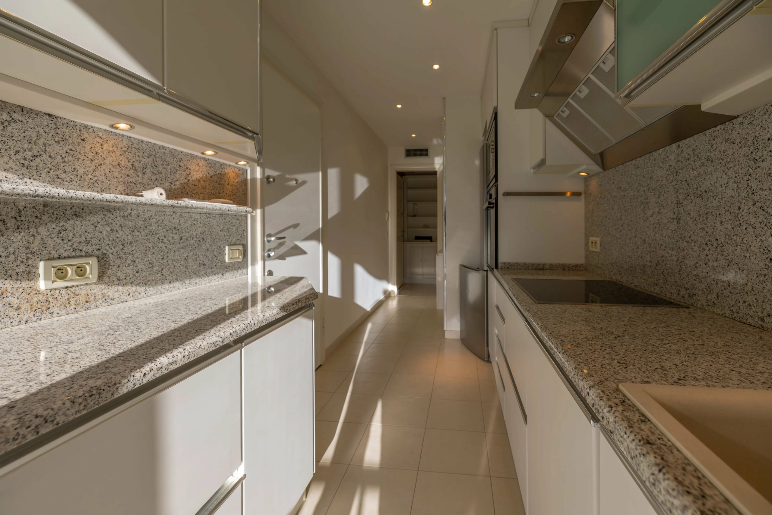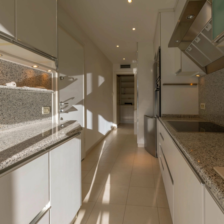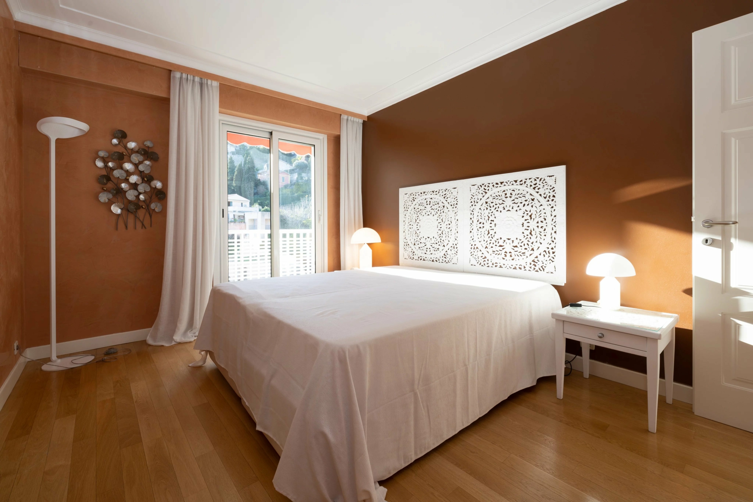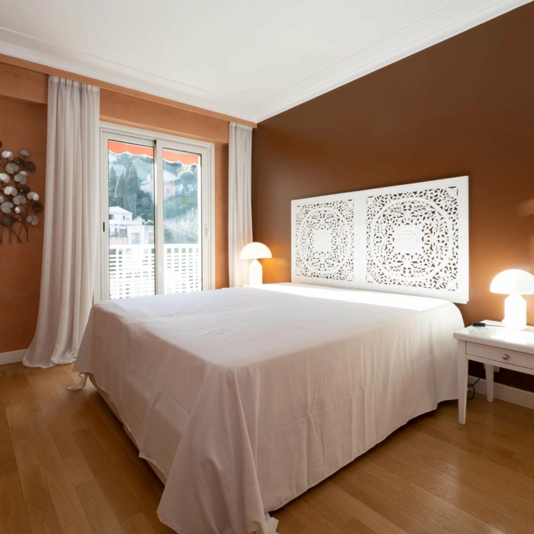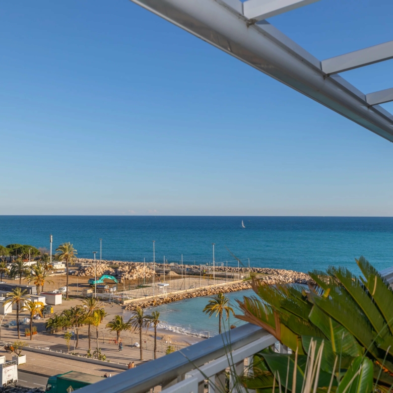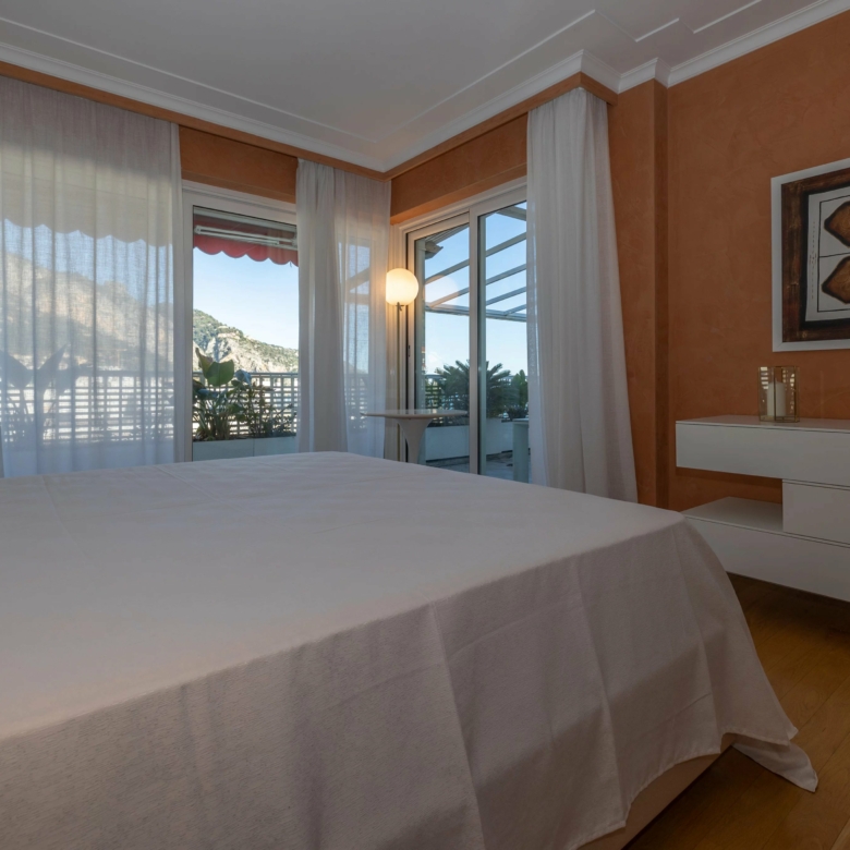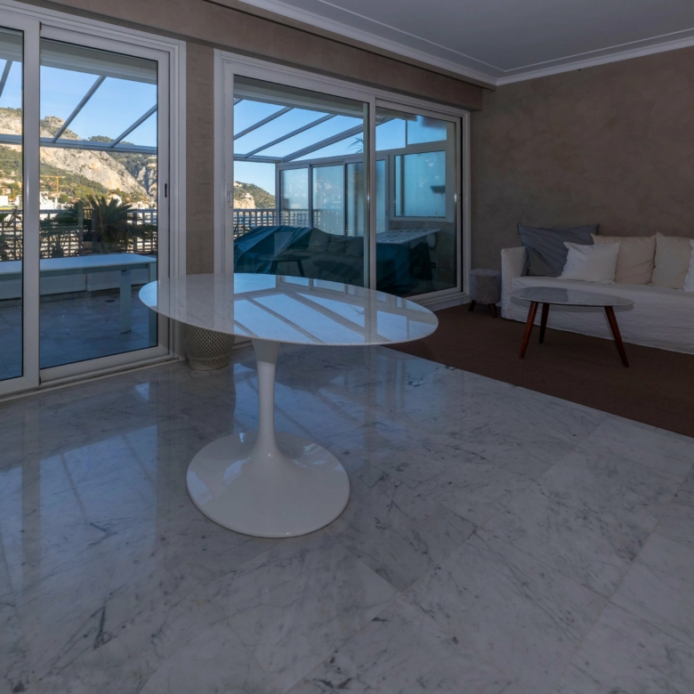 Dans résidence de standing en bord de mer à 2 pas des plages et du centre ; dernier étage avec toît terrasse privatif. Lumineux trois piéces traversant avec vaste séjour sur terrasse avec vue mer, deux belles chambres au calme avec salle de bains, cuisine séparée avec balcon. Solarium privé aménagé avec vue mer panoramique sur la baie de Garavan, le Port et les montagnes.
