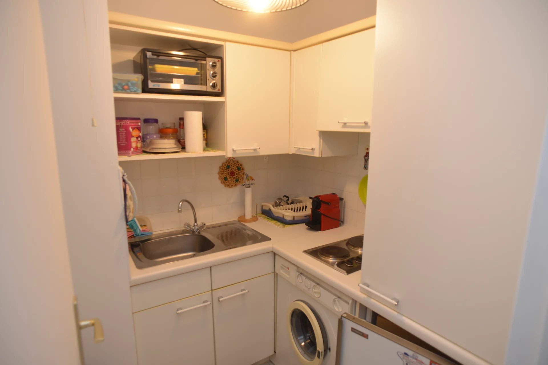 EXCLUSIVITE’ – Studio de 31 metres carres proche toutes commodités au 3ème étage avec ascenseur d’une residence avec gardien et piscine avec balcon et vue dégagée collines. Ce logement se compose d’entrée, salle de bains / toilettes, kitchinette,séjour, balcon et cave. Chauffage et eau chaude individuels.