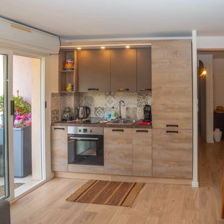 EXCLUSIVITE’ – Dans un immeuble moderne situé en front de Mer, en avant dernier étage, agréable appartement deux piéces rénové de 37,65 m² avec un balcon et un garage en supplement. L’appartement se compose d’une entrée, une salle d’ eau avec douche, wc et fenêtre, un séjour d’ angle avec coin cuisine et une chambre. Vue Mer et verdure. Proche plages, arrêt de bus, tennis et Roquebrune Cap-Martin. GARAGE en plus dimensions 2.70m x 4.50m