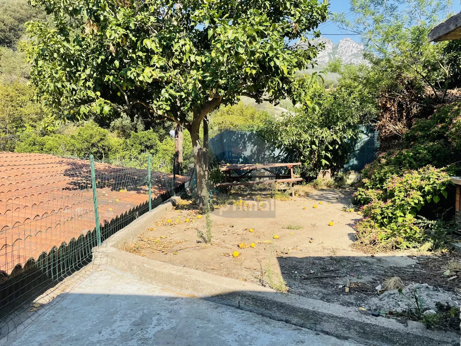 véranda. Jardin plat de 80m² avec citronniers.