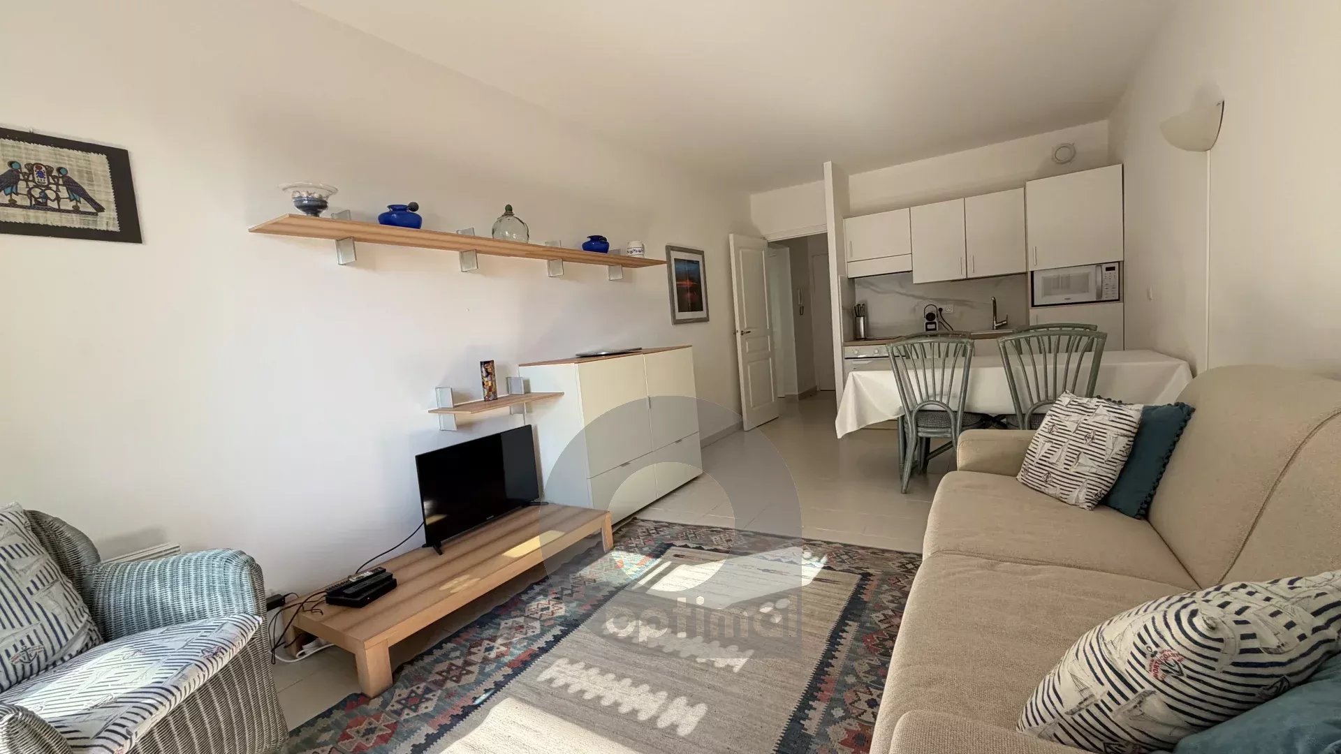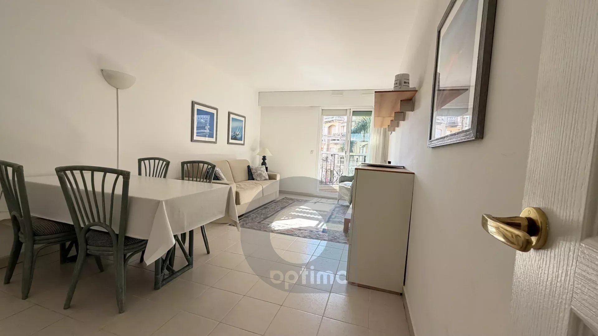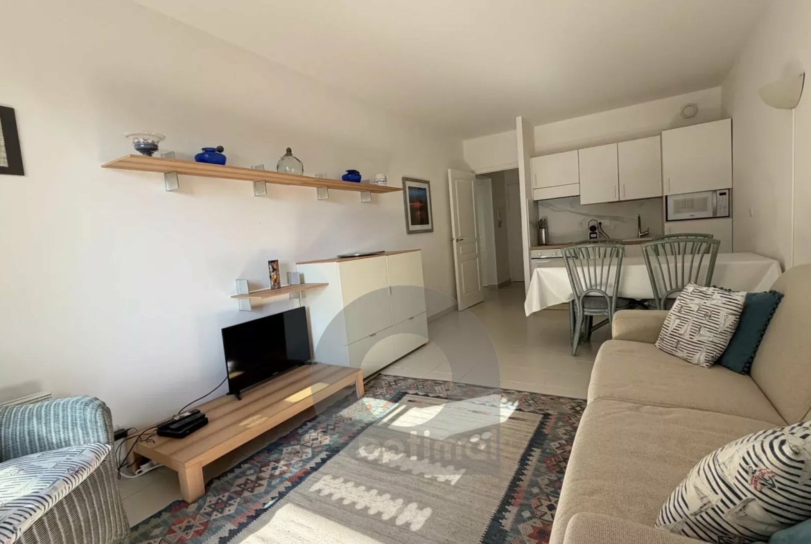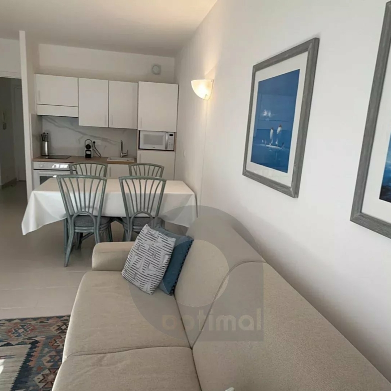 L’appartement se compose d’un séjour lumineux avec cuisine équipée, ouvrant sur un balcon offrant une agréable vue sur les jardins de la cour intérieure et petite échappée mer, l’idéal pour profiter d’un cadre de vie paisible en plein cœur de la ville.