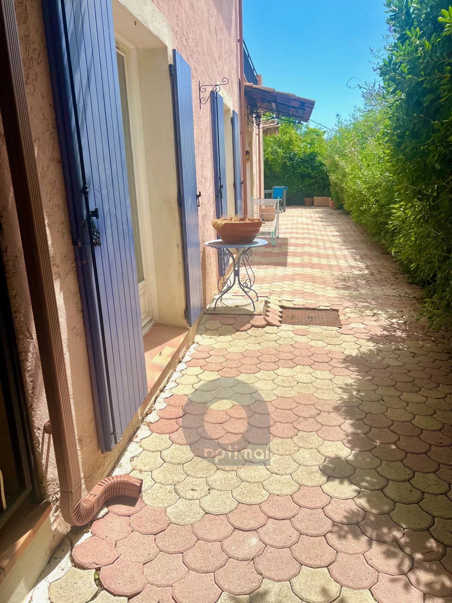 Bel espace extérieur bien entretenu. terrasses et piscine.