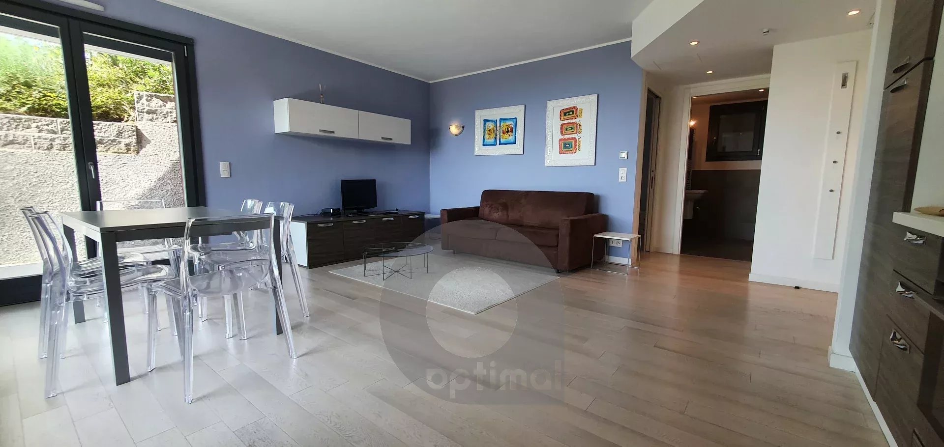 ROQUEBRUNE-CAP-MARTIN, proche centre, commodités et transports en commun, dans une résidence de très bon standing avec piscine, bel appartement de type T2 en rez-de-jardin, composé d’un séjour avec cuisine équipée, une chambre, une salle d’eau avec WC et une grande terrasse/ jardin exposé sud/ouest, au calme et ensoleillé, vue mer. Appartement actuellement loué au prix de 1342.49 € / mois + 131 € de provision/charges. Possibilité d’achat d’un parking privé en sus du prix (35 000 €).