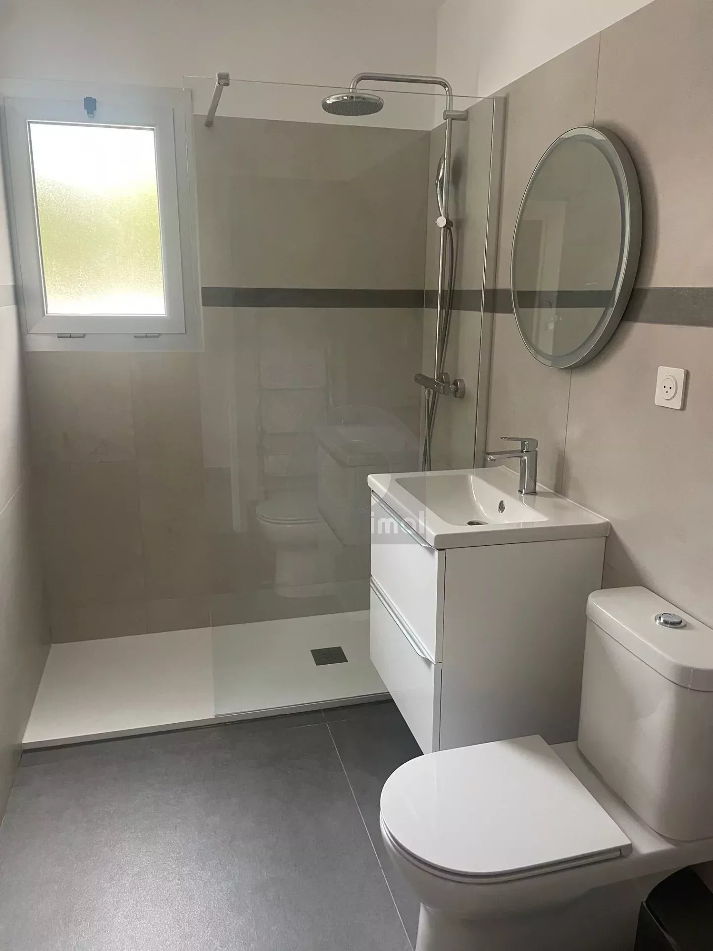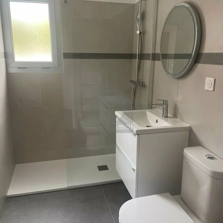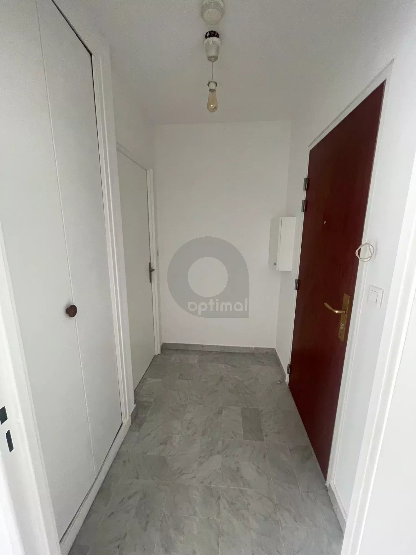 L’appartement, récemment rénové, se compose d’une entrée avec placard mural, pièce principale avec coin cuisine, balcon, salle-d ‘eau avec wc, ainsi qu’un parking et une cave.