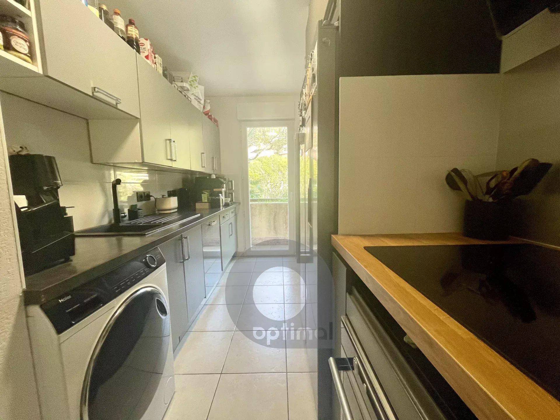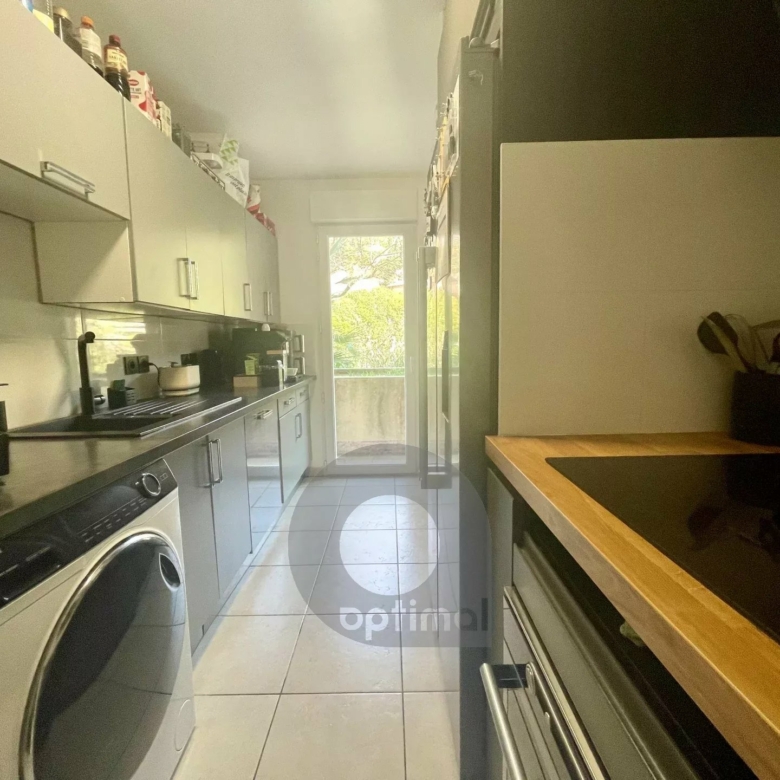 Il est composé d’un hall d’entrée avec placard, séjour, cuisine, dégagement, une chambre avec placard, salle de bains et water-closet indépendant. Une agréable terrasse de 18,50 m² au droit du séjour et de la cuisine, orientation Nord et Est, avec vue sur la verdure.