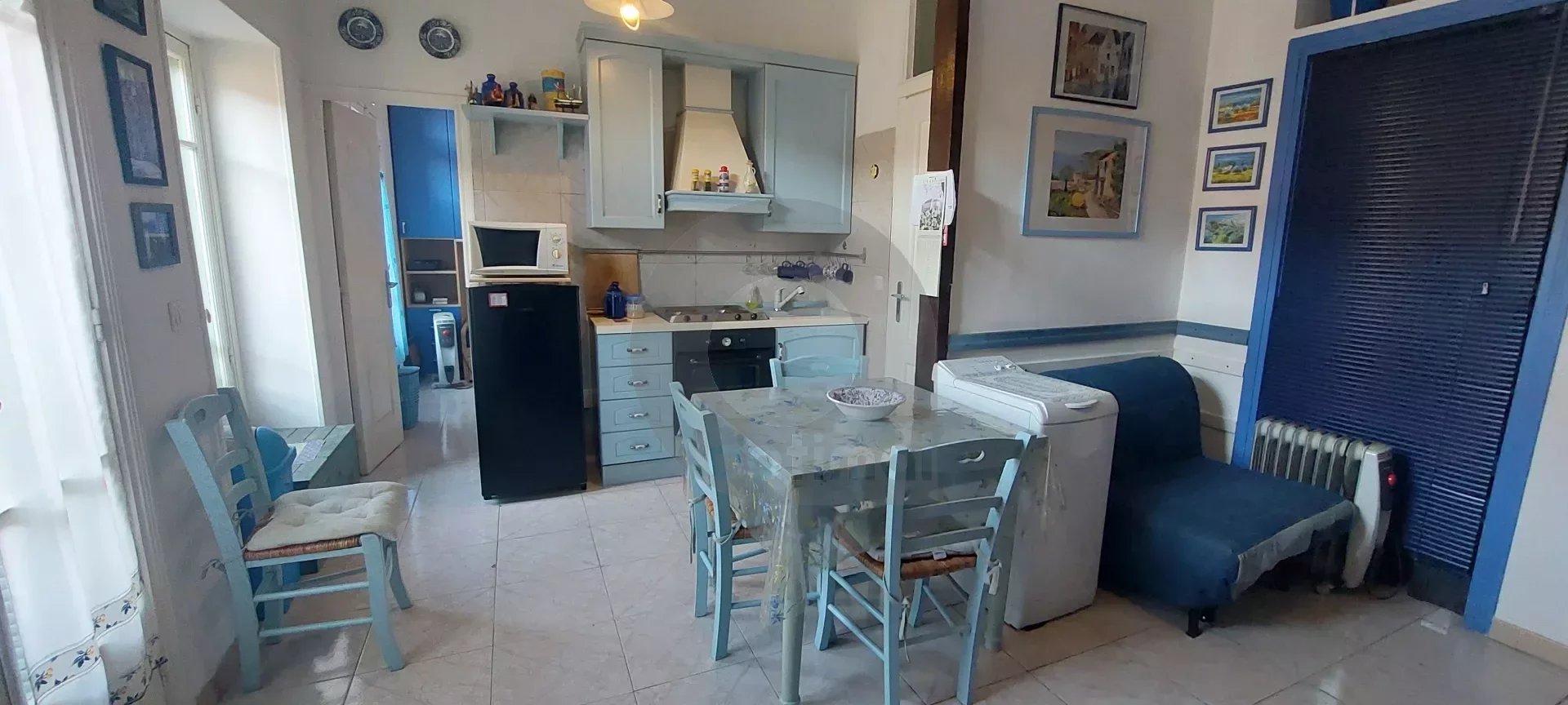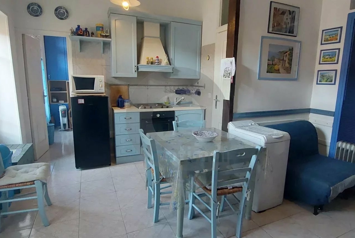 Plein centre CARNOLES et au calme, petit 2 pièces au 1er étage d’une maison de pays composé d’un séjour avec cuisine, chambre, salle de bains avec WC. Très lumineux. Pas de balcon mais porte fenêtre dans chaque pièce