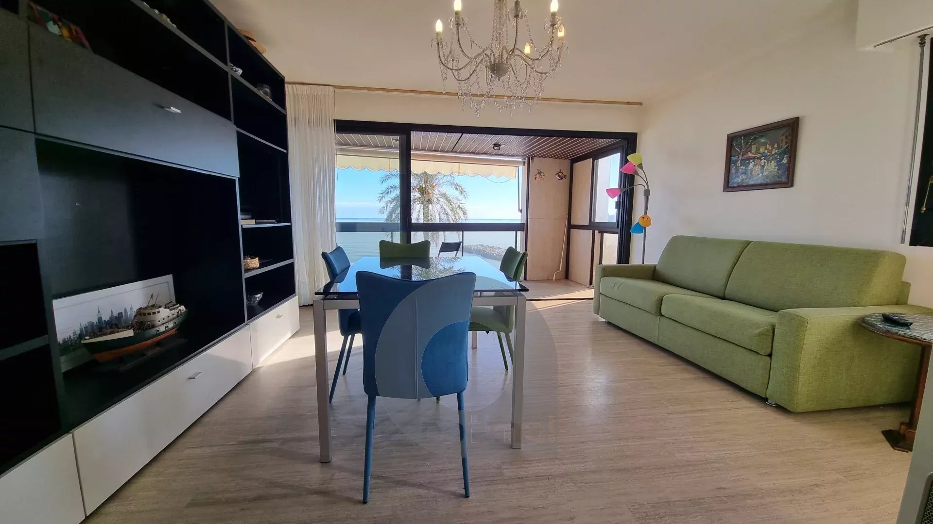 Roquebrune Cap Martin, en front de mer, en étage élevé d’une résidence moderne, appartement d’environ 55 m² habitable, de type deux pièces principales, traversant et d’angle sud/ouest, très lumineux, jouissant d’une loggia, un balcon, une cave et un garage double, magnifique vue mer panoramique du Solenzara au cap martin.