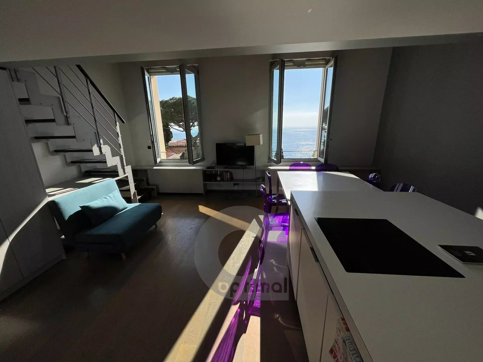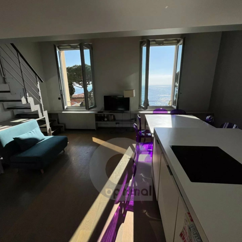 EXCLUSIVITE. Roquebrune-Cap-Martin, secteur très résidentiel de Cabbé, entre Monaco et l’Italie, proche gare SNCF et plages, en dernier étage d’une résidence de haut standing, magnifique appartement de type “loft”, 2 pièces en duplex d’environ 65 m², un appartement situé au 2ème et dernier étage, comprenant entrée, séjour avec cuisine américaine, une salle d’eau puis à l’étage en mezzanine, une chambre avec salle de bains, calme et ensoleillé, très jolie vue mer sur le cap martin. Résidence pied dans l’eau, avec salle de sport, sauna et jouissant d’une superbe piscine à débordement. 2 Parkings privés en sous sol en sus du prix. Coup de cœur assuré!