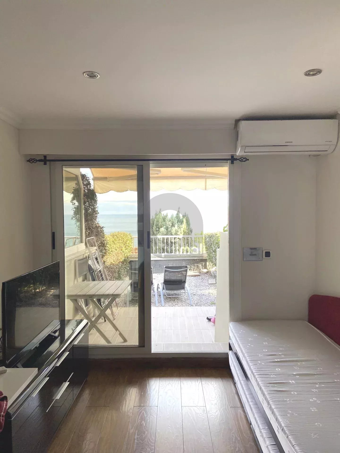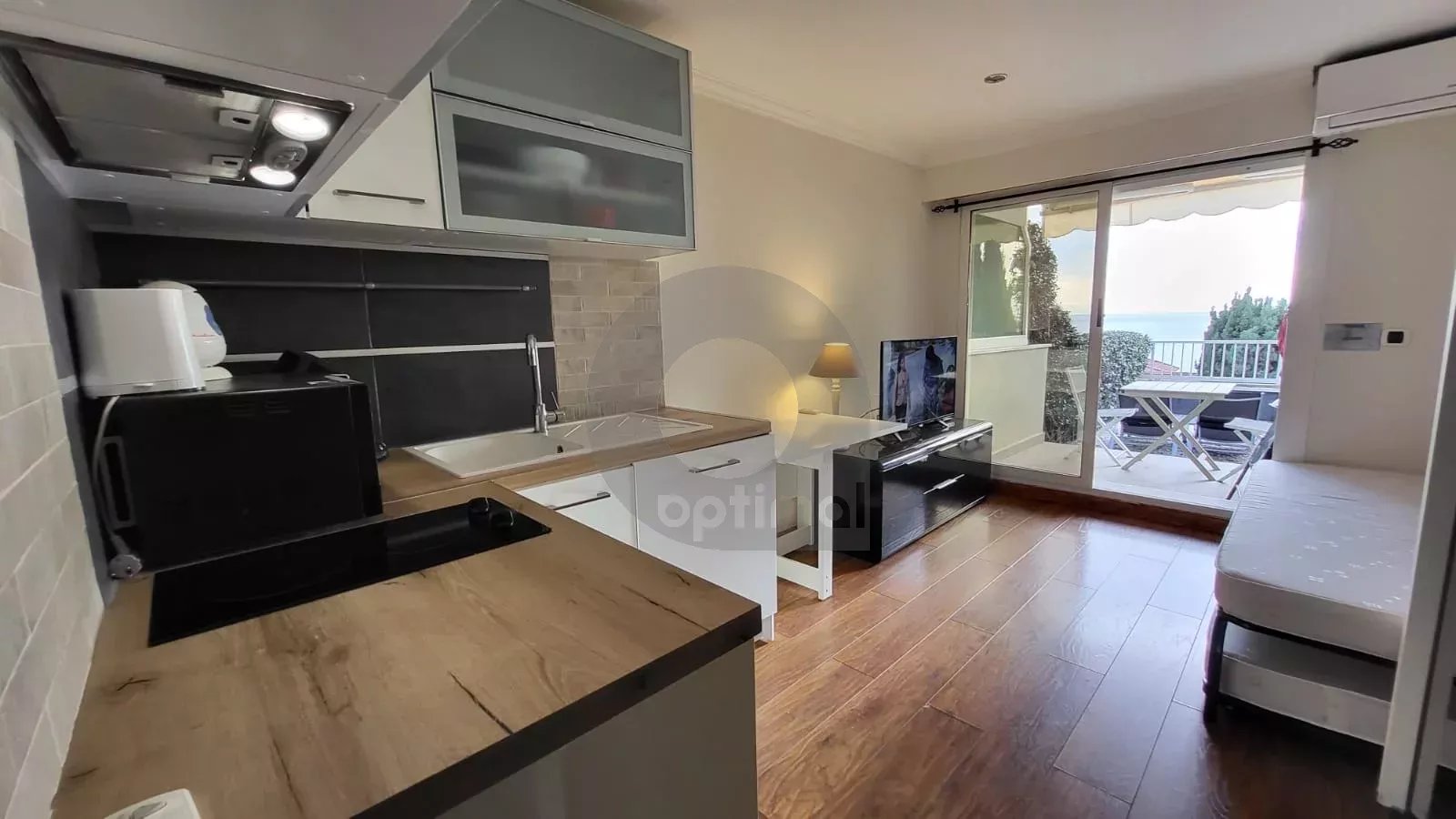 Just 2 minutes by car from the Principality of Monaco, attractive 16m2 studio with large 20m2 south-facing terrace enjoying breathtaking sea and Cap Martin views. The apartment comprises an entrance hall leading to a living room with kitchenette and shower room with toilet, then onto the jasmine-lined terrace.